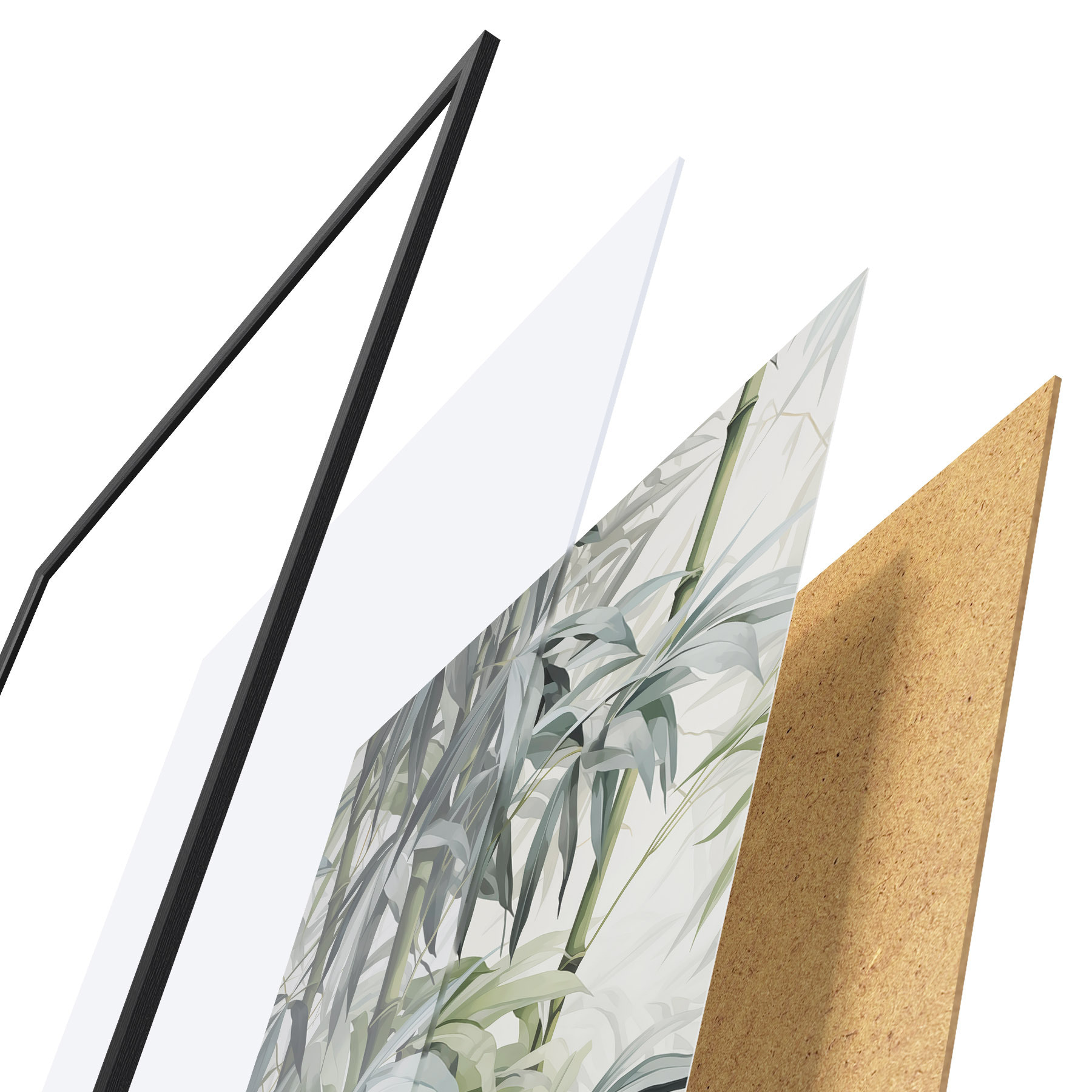 Plakatą sudaro rėmas, pleksiklas, atspausdintas vaizdas ir medžio drožlių plokštės pagrindas. Plakatą galima iš karto pakabinti ant sienos dėl kitoje pusėje esančių laikiklių.