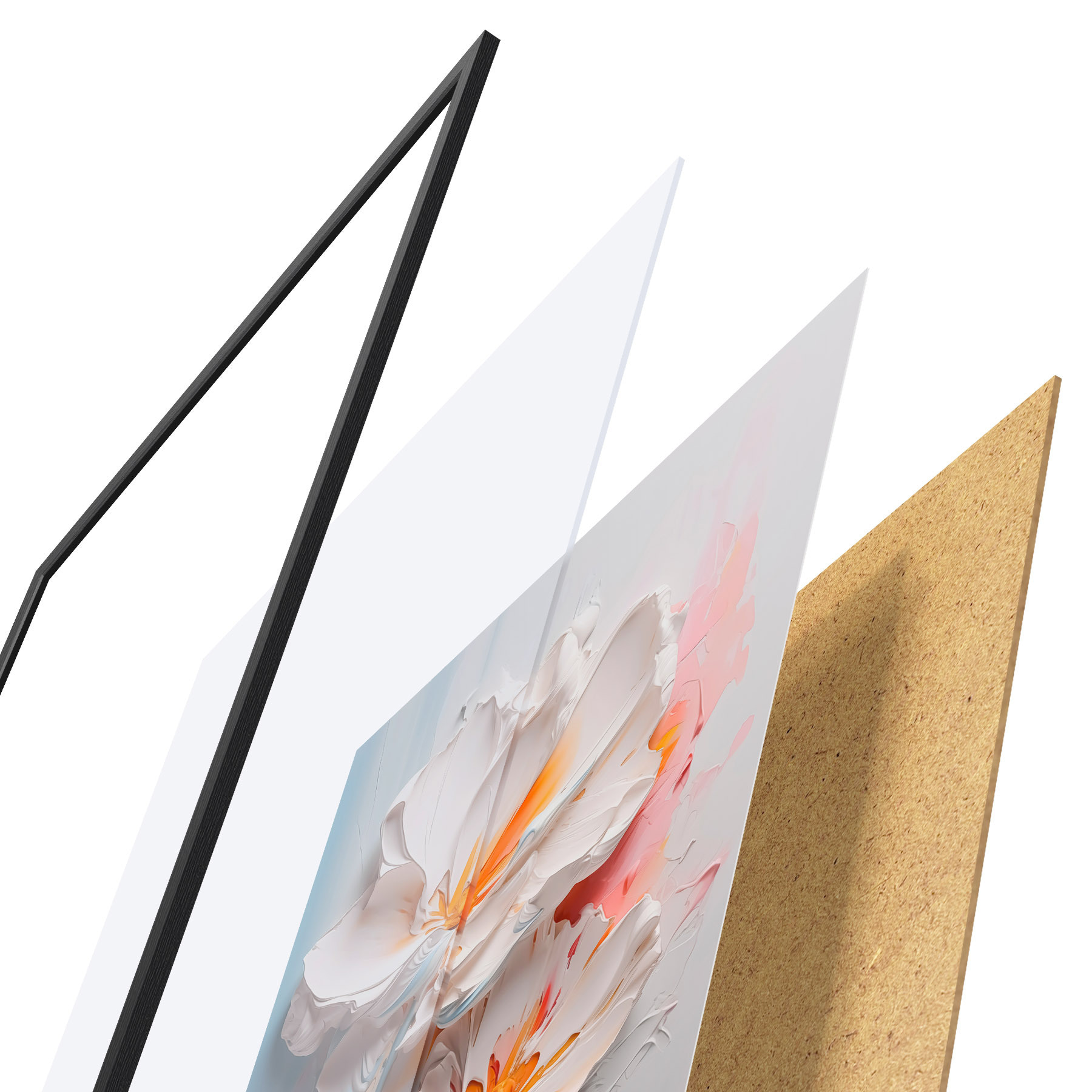Plakatą sudaro rėmas, pleksiklas, atspausdintas vaizdas ir medžio drožlių plokštės pagrindas. Plakatą galima iš karto pakabinti ant sienos dėl kitoje pusėje esančių laikiklių.