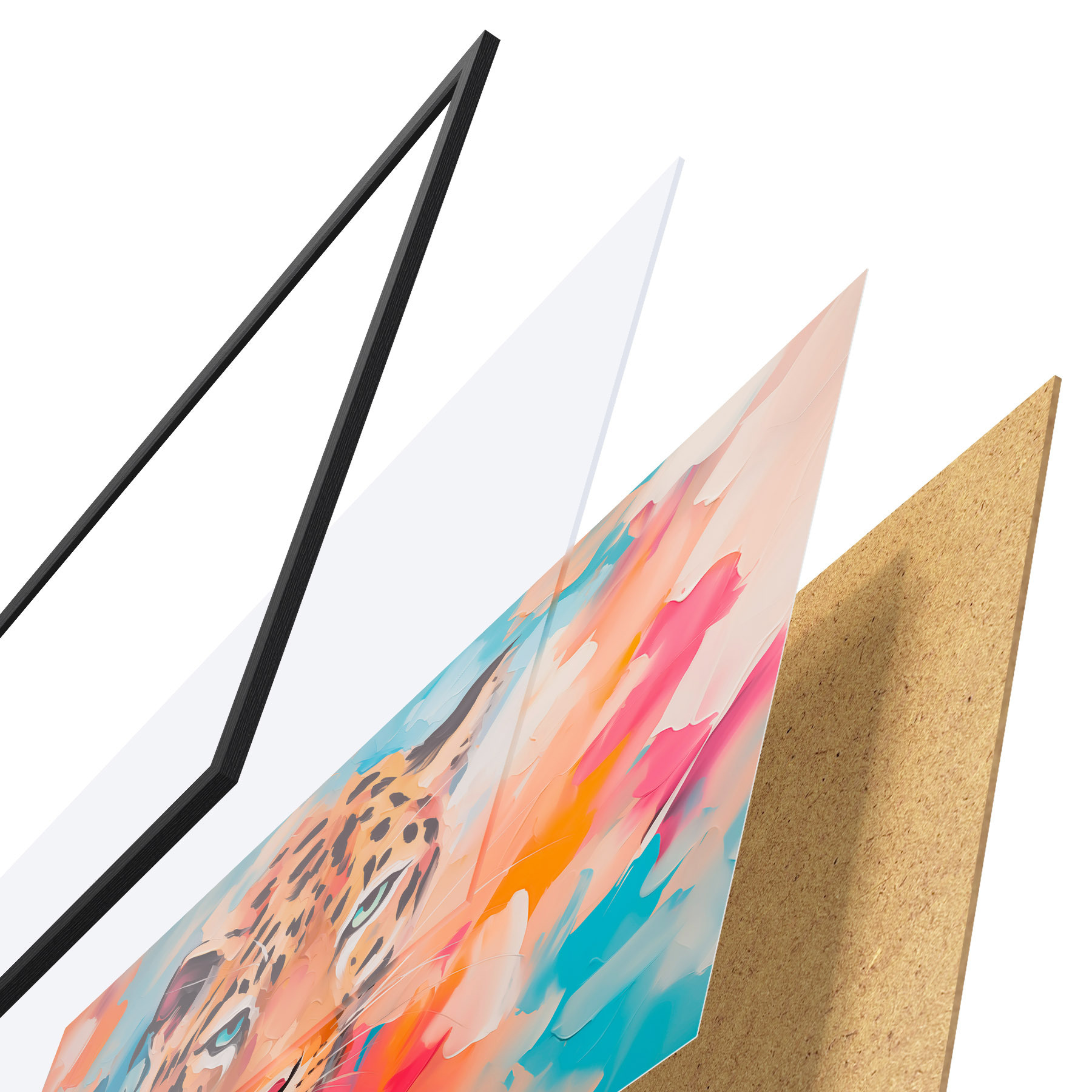 Plakatą sudaro rėmas, pleksiklas, atspausdintas vaizdas ir medžio drožlių plokštės pagrindas. Plakatą galima iš karto pakabinti ant sienos dėl kitoje pusėje esančių laikiklių.