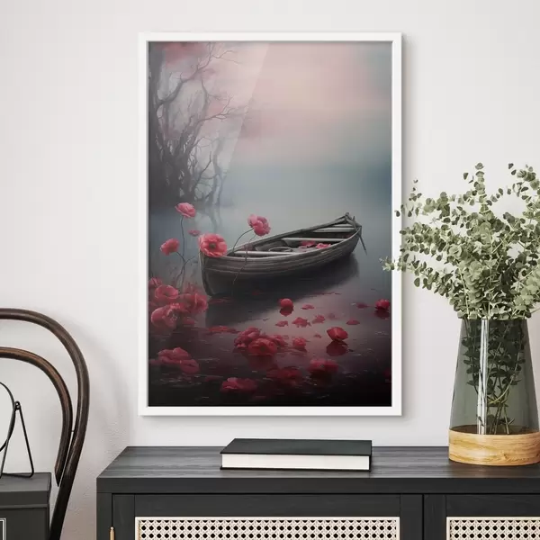 Plakatas Valtis ir aguonų žiedai ežere f43203