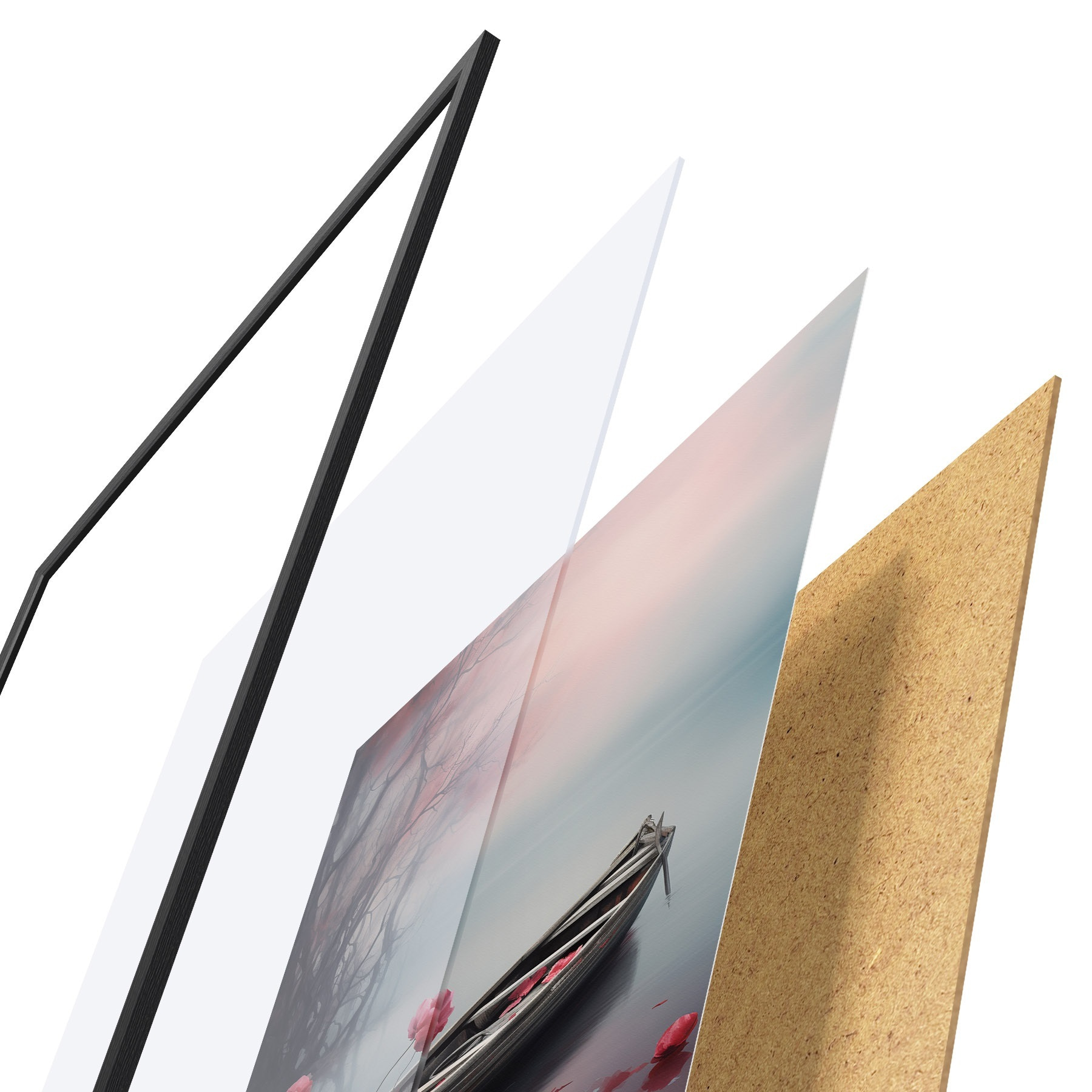 Plakatą sudaro rėmas, pleksiklas, atspausdintas vaizdas ir medžio drožlių plokštės pagrindas. Plakatą galima iš karto pakabinti ant sienos dėl kitoje pusėje esančių laikiklių.