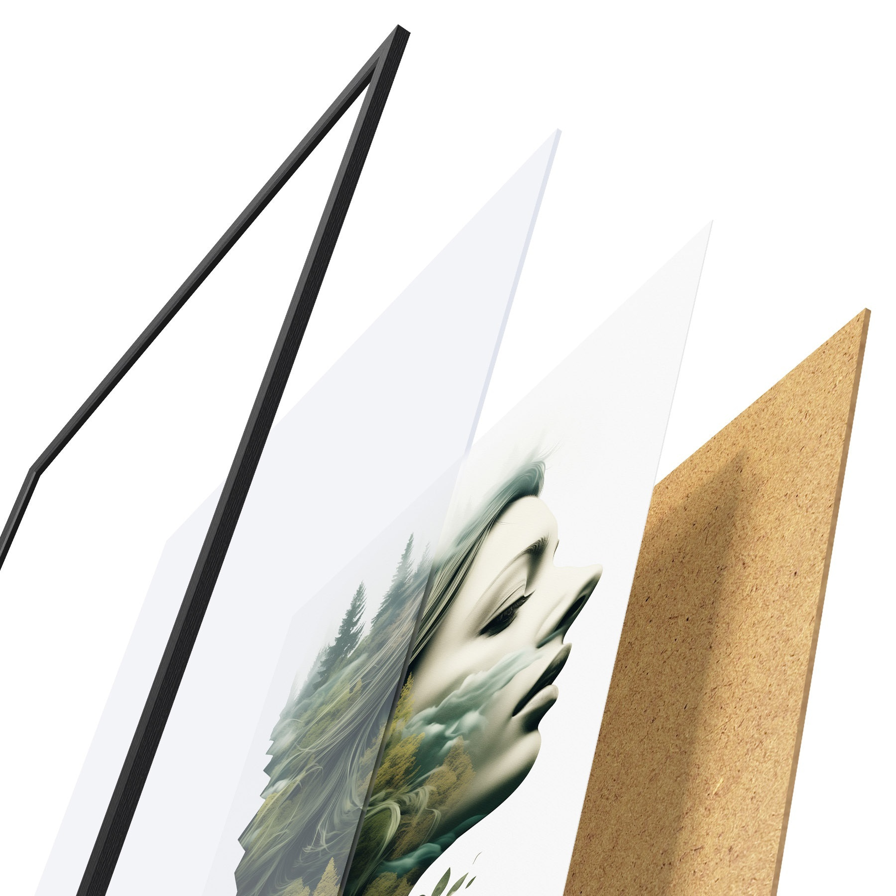 Plakatą sudaro rėmas, pleksiklas, atspausdintas vaizdas ir medžio drožlių plokštės pagrindas. Plakatą galima iš karto pakabinti ant sienos dėl kitoje pusėje esančių laikiklių.