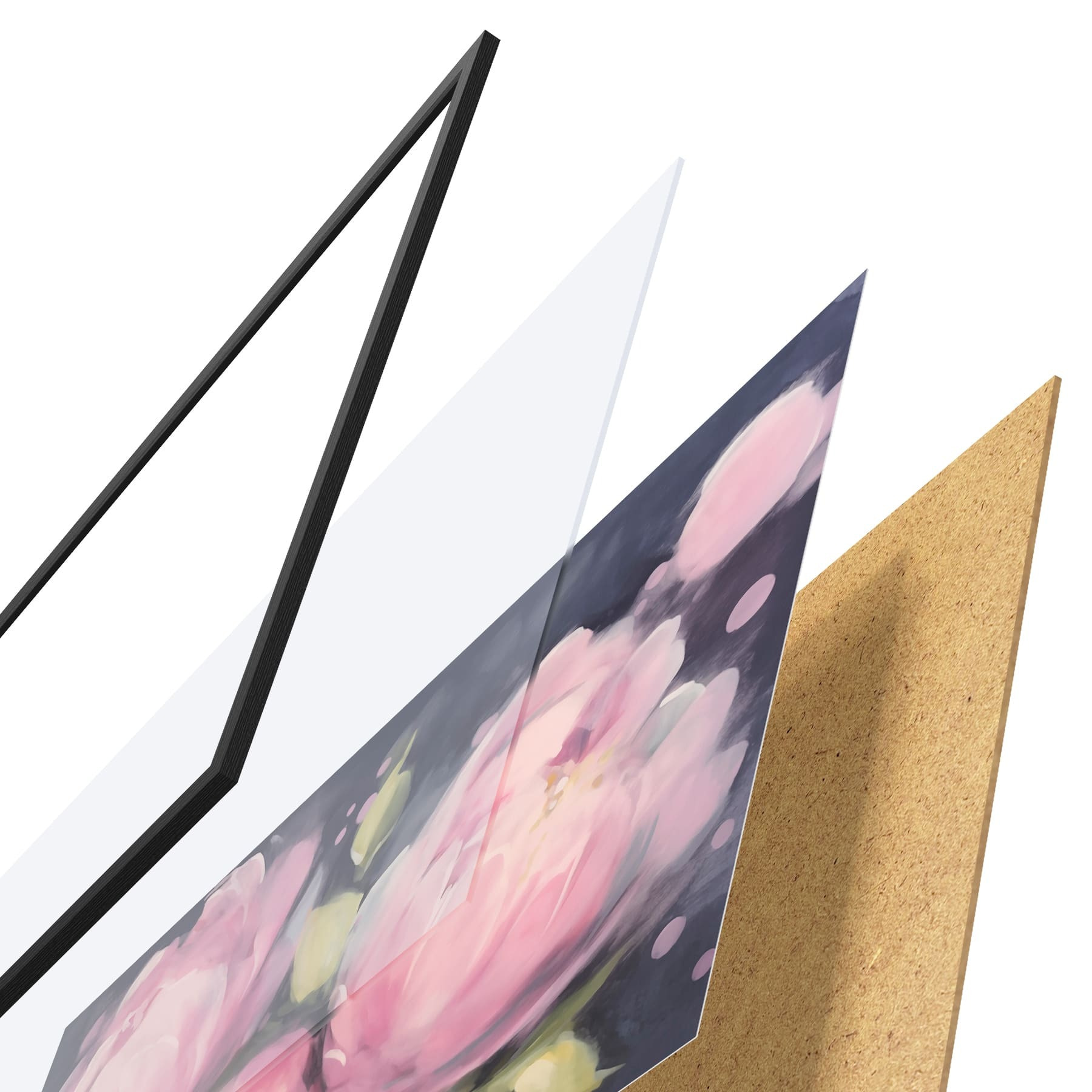 Plakatą sudaro rėmas, pleksiklas, atspausdintas vaizdas ir medžio drožlių plokštės pagrindas. Plakatą galima iš karto pakabinti ant sienos dėl kitoje pusėje esančių laikiklių.