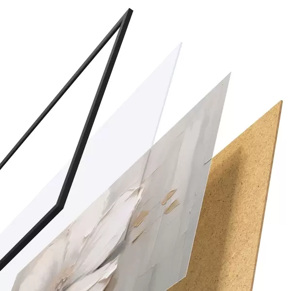 Plakatą sudaro rėmas, pleksiklas, atspausdintas vaizdas ir medžio drožlių plokštės pagrindas. Plakatą galima iš karto pakabinti ant sienos dėl kitoje pusėje esančių laikiklių.