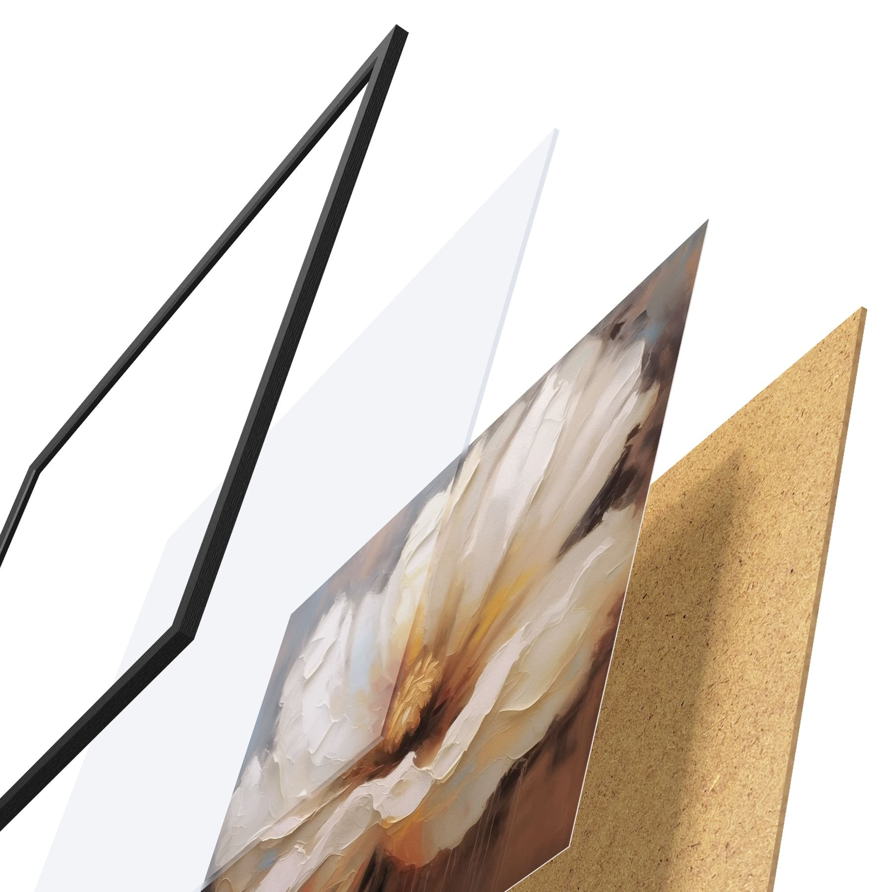 Plakatą sudaro rėmas, pleksiklas, atspausdintas vaizdas ir medžio drožlių plokštės pagrindas. Plakatą galima iš karto pakabinti ant sienos dėl kitoje pusėje esančių laikiklių.