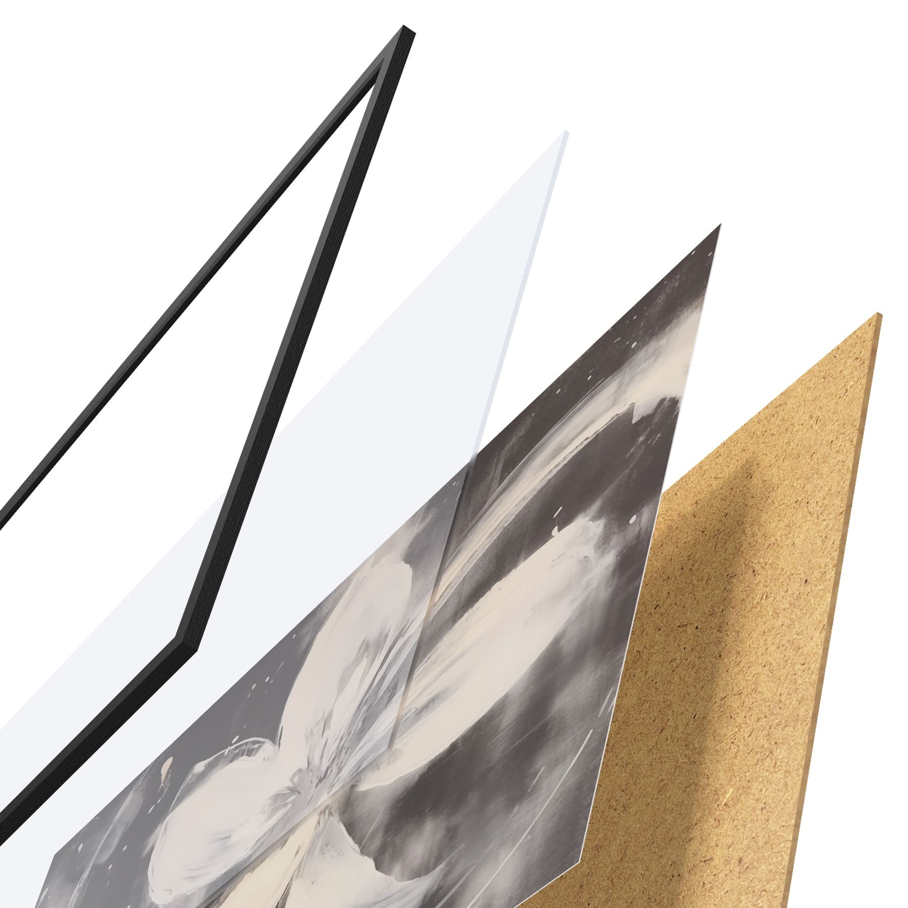 Plakatą sudaro rėmas, pleksiklas, atspausdintas vaizdas ir medžio drožlių plokštės pagrindas. Plakatą galima iš karto pakabinti ant sienos dėl kitoje pusėje esančių laikiklių.