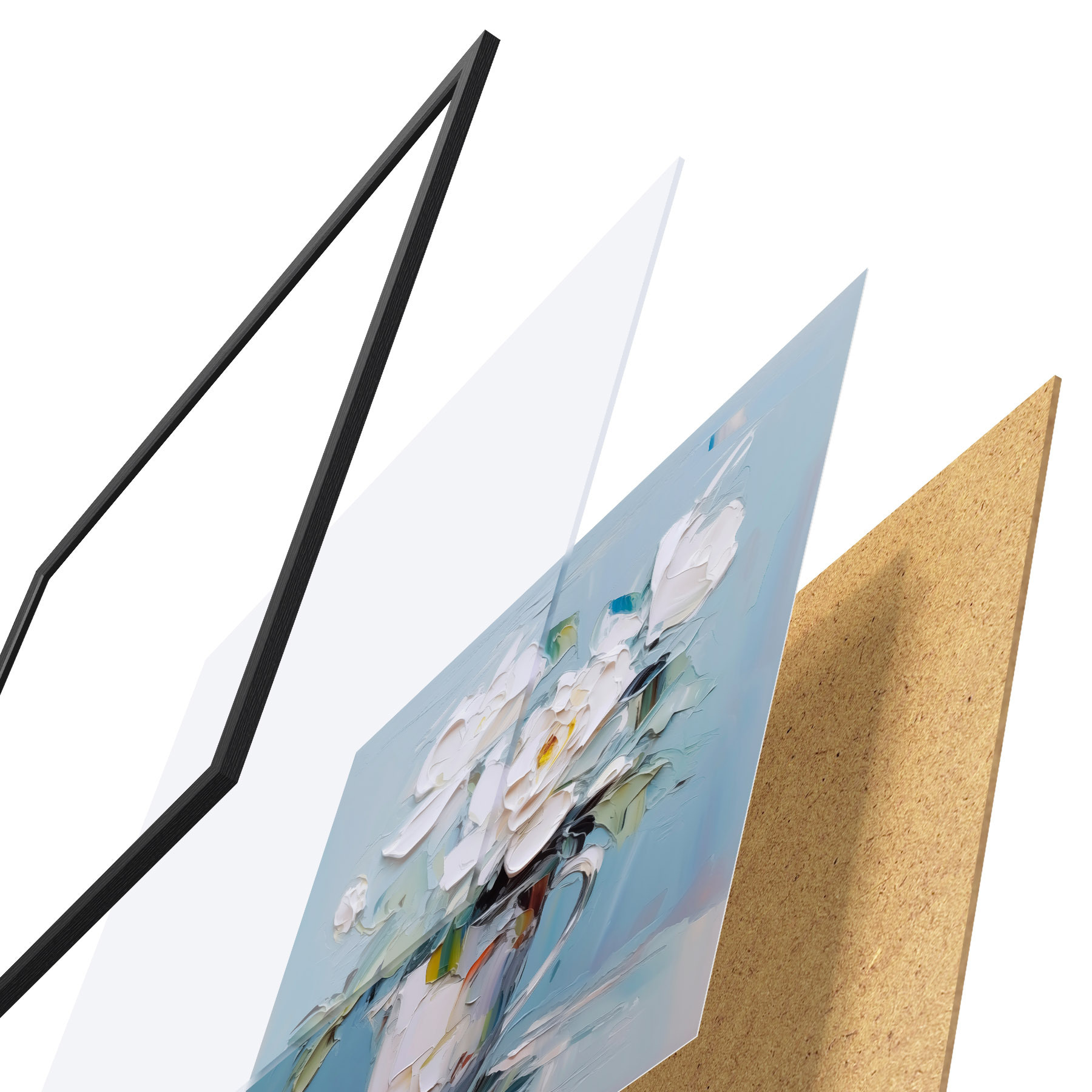 Plakatas Baltos gėlės puodelyje imituojanti tapyba Ne f43225