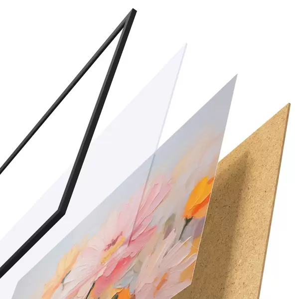 Plakatą sudaro rėmas, pleksiklas, atspausdintas vaizdas ir medžio drožlių plokštės pagrindas. Plakatą galima iš karto pakabinti ant sienos dėl kitoje pusėje esančių laikiklių.