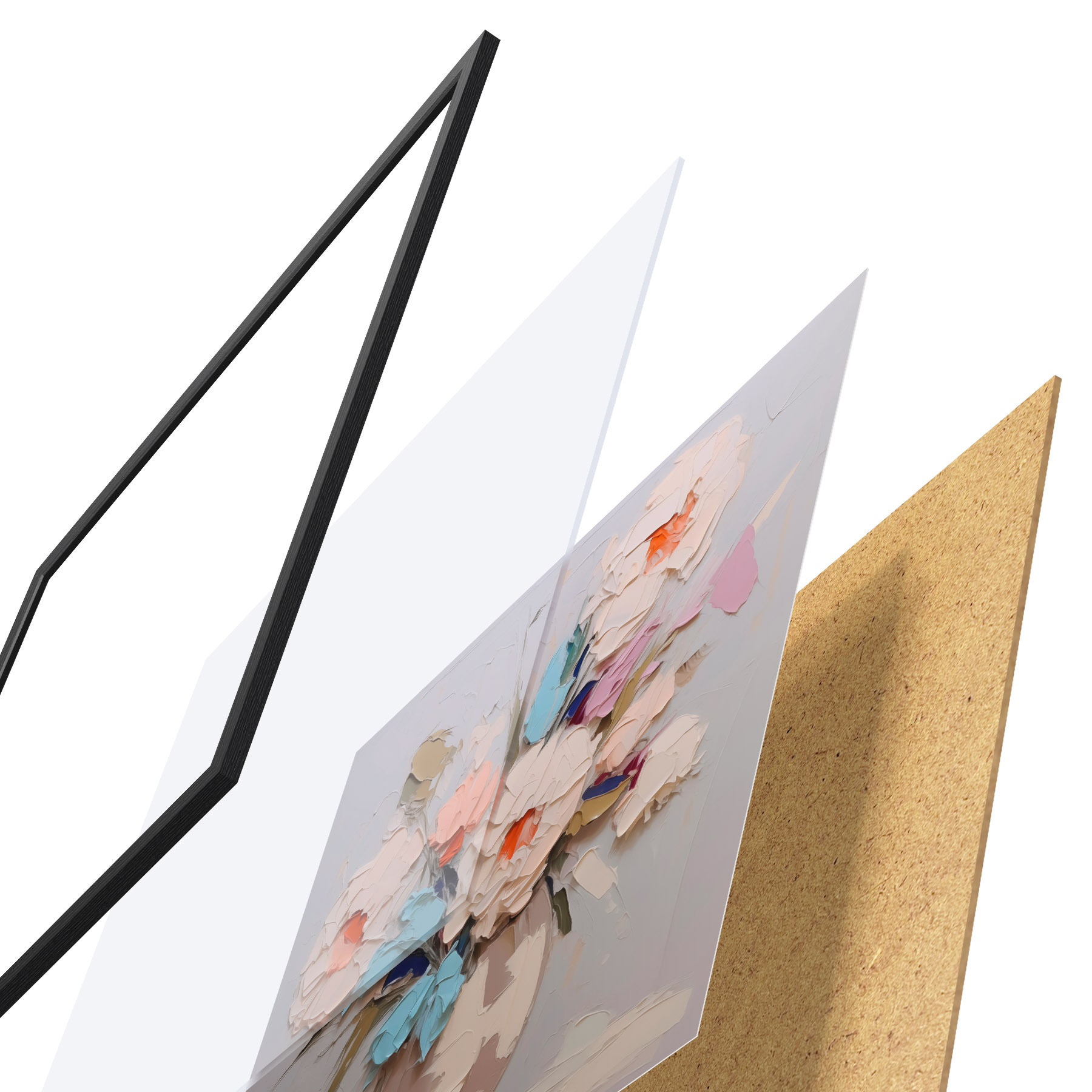 Plakatą sudaro rėmas, pleksiklas, atspausdintas vaizdas ir medžio drožlių plokštės pagrindas. Plakatą galima iš karto pakabinti ant sienos dėl kitoje pusėje esančių laikiklių.