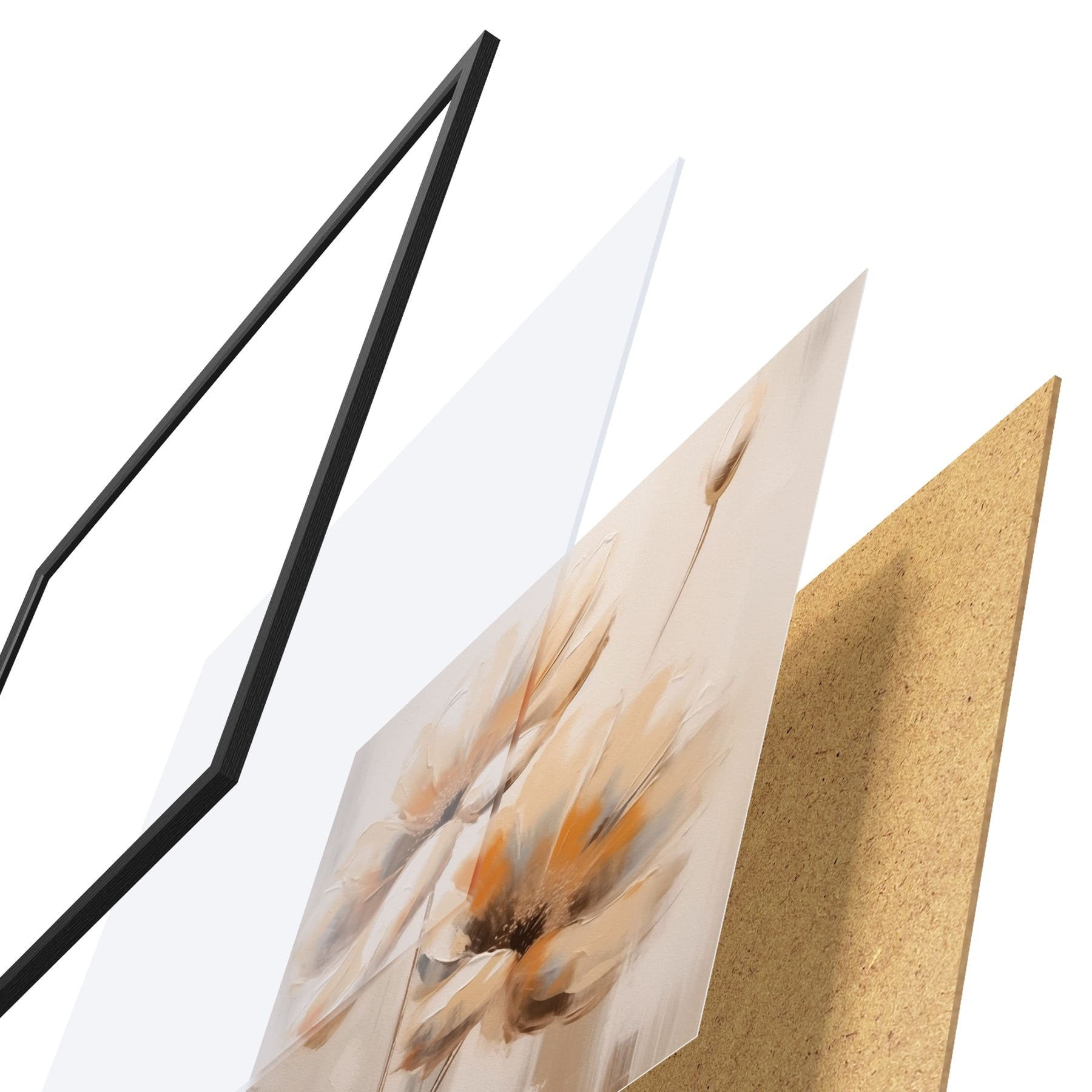 Plakatą sudaro rėmas, pleksiklas, atspausdintas vaizdas ir medžio drožlių plokštės pagrindas. Plakatą galima iš karto pakabinti ant sienos dėl kitoje pusėje esančių laikiklių.