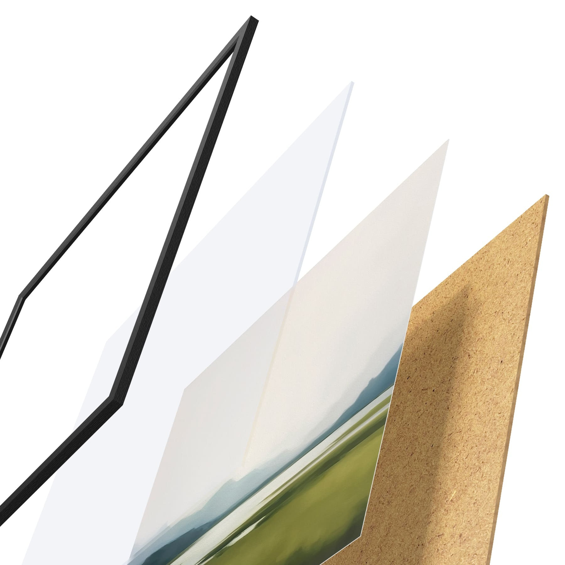 Plakatą sudaro rėmas, pleksiklas, atspausdintas vaizdas ir medžio drožlių plokštės pagrindas. Plakatą galima iš karto pakabinti ant sienos dėl kitoje pusėje esančių laikiklių.