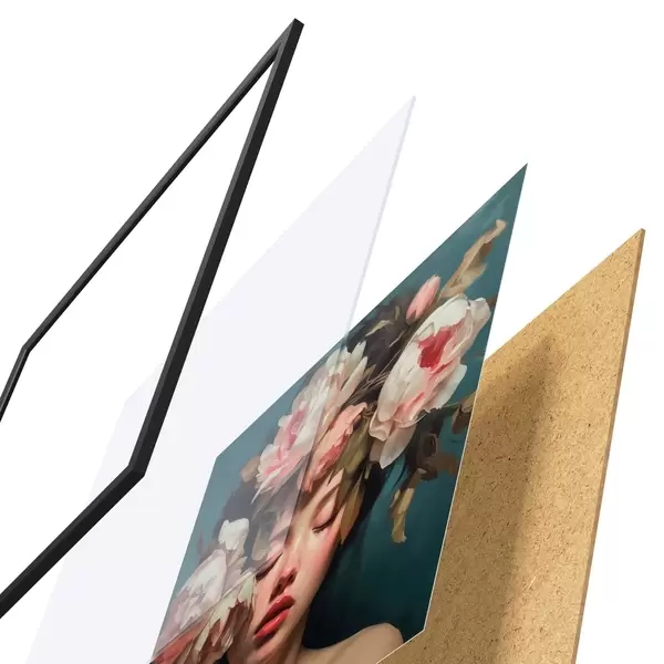 Plakatą sudaro rėmas, pleksiklas, atspausdintas vaizdas ir medžio drožlių plokštės pagrindas. Plakatą galima iš karto pakabinti ant sienos dėl kitoje pusėje esančių laikiklių.