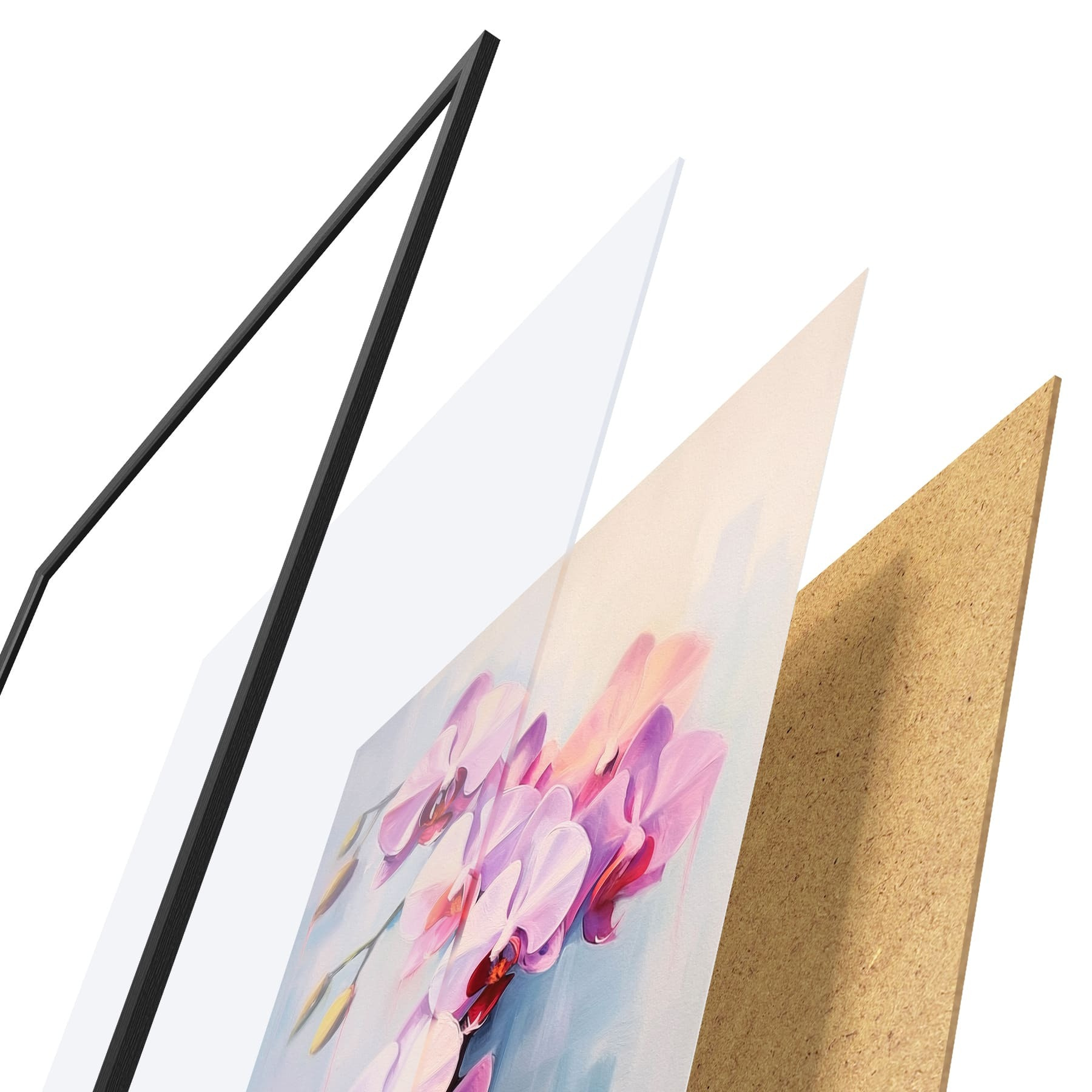 Plakatą sudaro rėmas, pleksiklas, atspausdintas vaizdas ir medžio drožlių plokštės pagrindas. Plakatą galima iš karto pakabinti ant sienos dėl kitoje pusėje esančių laikiklių.
