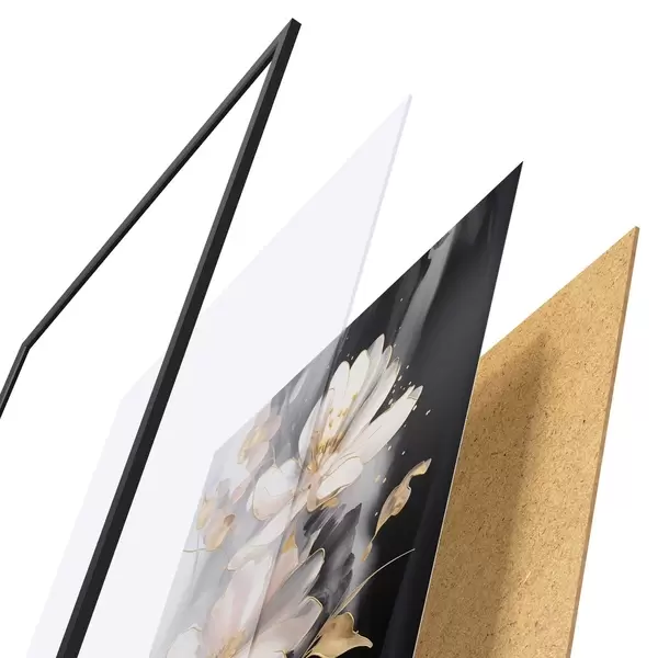 Plakatą sudaro rėmas, pleksiklas, atspausdintas vaizdas ir medžio drožlių plokštės pagrindas. Plakatą galima iš karto pakabinti ant sienos dėl kitoje pusėje esančių laikiklių.