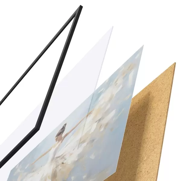 Plakatą sudaro rėmas, pleksiklas, atspausdintas vaizdas ir medžio drožlių plokštės pagrindas. Plakatą galima iš karto pakabinti ant sienos dėl kitoje pusėje esančių laikiklių.