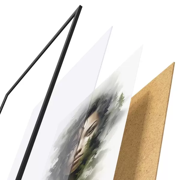 Plakatą sudaro rėmas, pleksiklas, atspausdintas vaizdas ir medžio drožlių plokštės pagrindas. Plakatą galima iš karto pakabinti ant sienos dėl kitoje pusėje esančių laikiklių.
