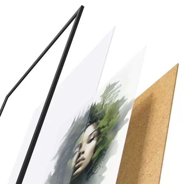Plakatą sudaro rėmas, pleksiklas, atspausdintas vaizdas ir medžio drožlių plokštės pagrindas. Plakatą galima iš karto pakabinti ant sienos dėl kitoje pusėje esančių laikiklių.