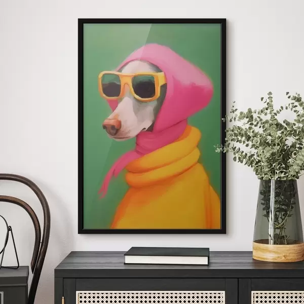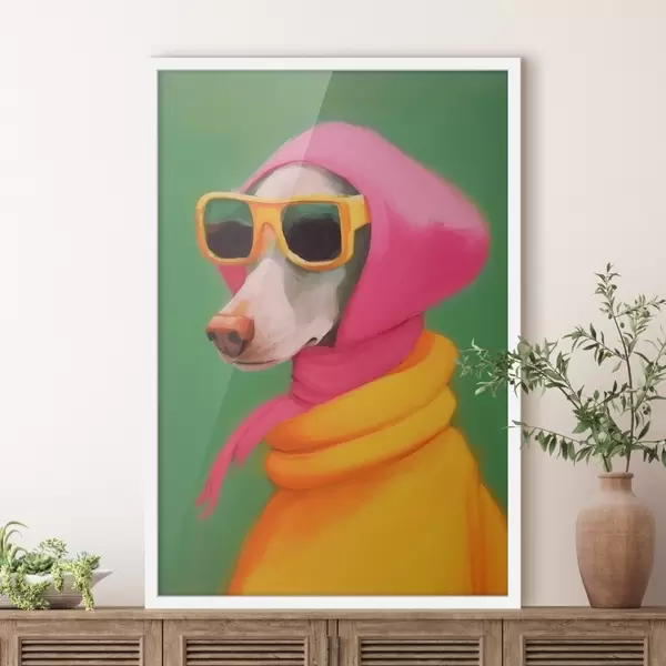 Plakatas Stilingas šuo ryškiais drabužiais f43265