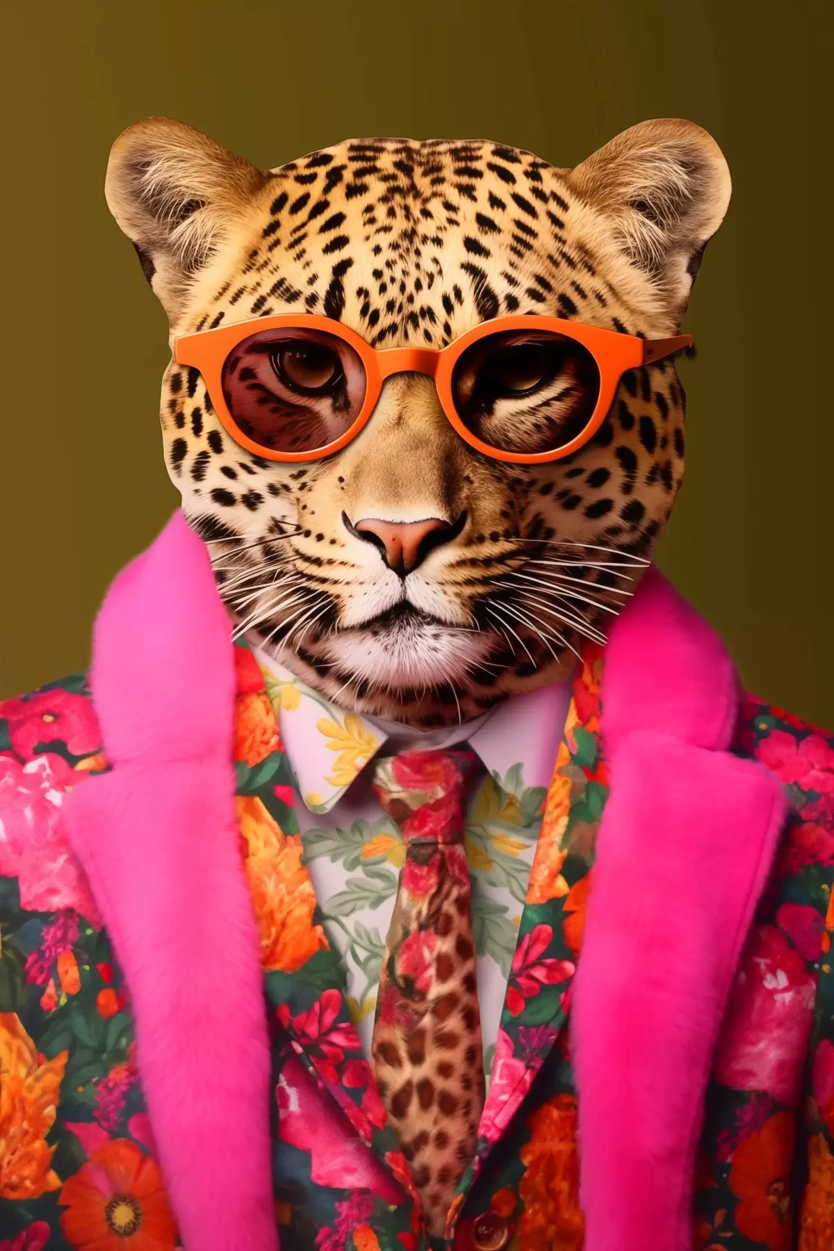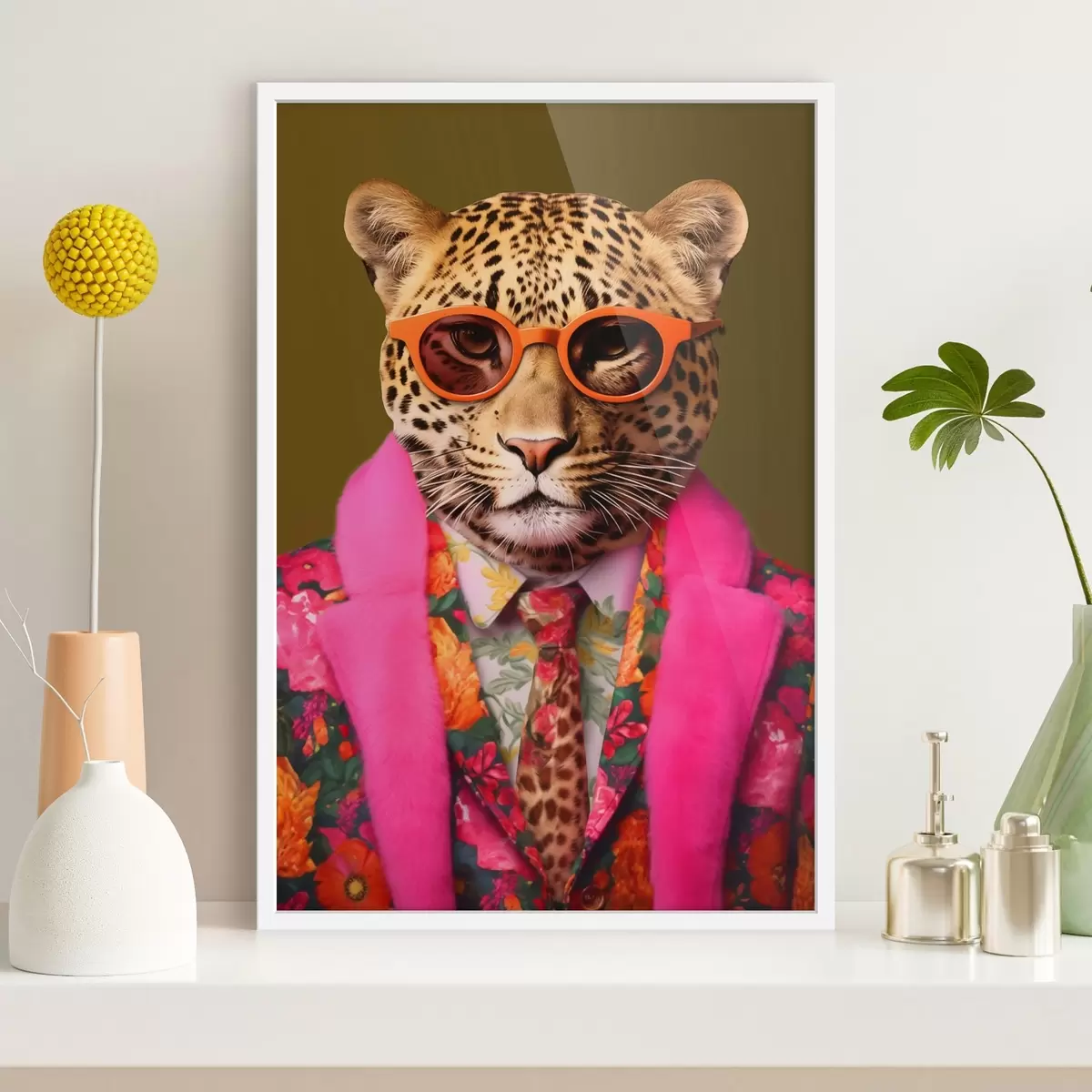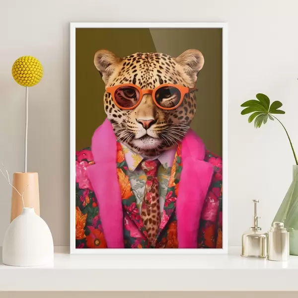 Plakatas Stilingas leopardas su gėlių kostiumu f43267