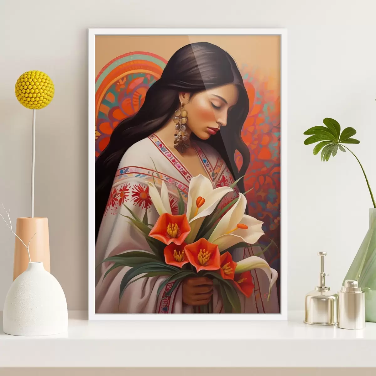 Plakatas Tradicinis vaizdas su lelijų puokšte f43268