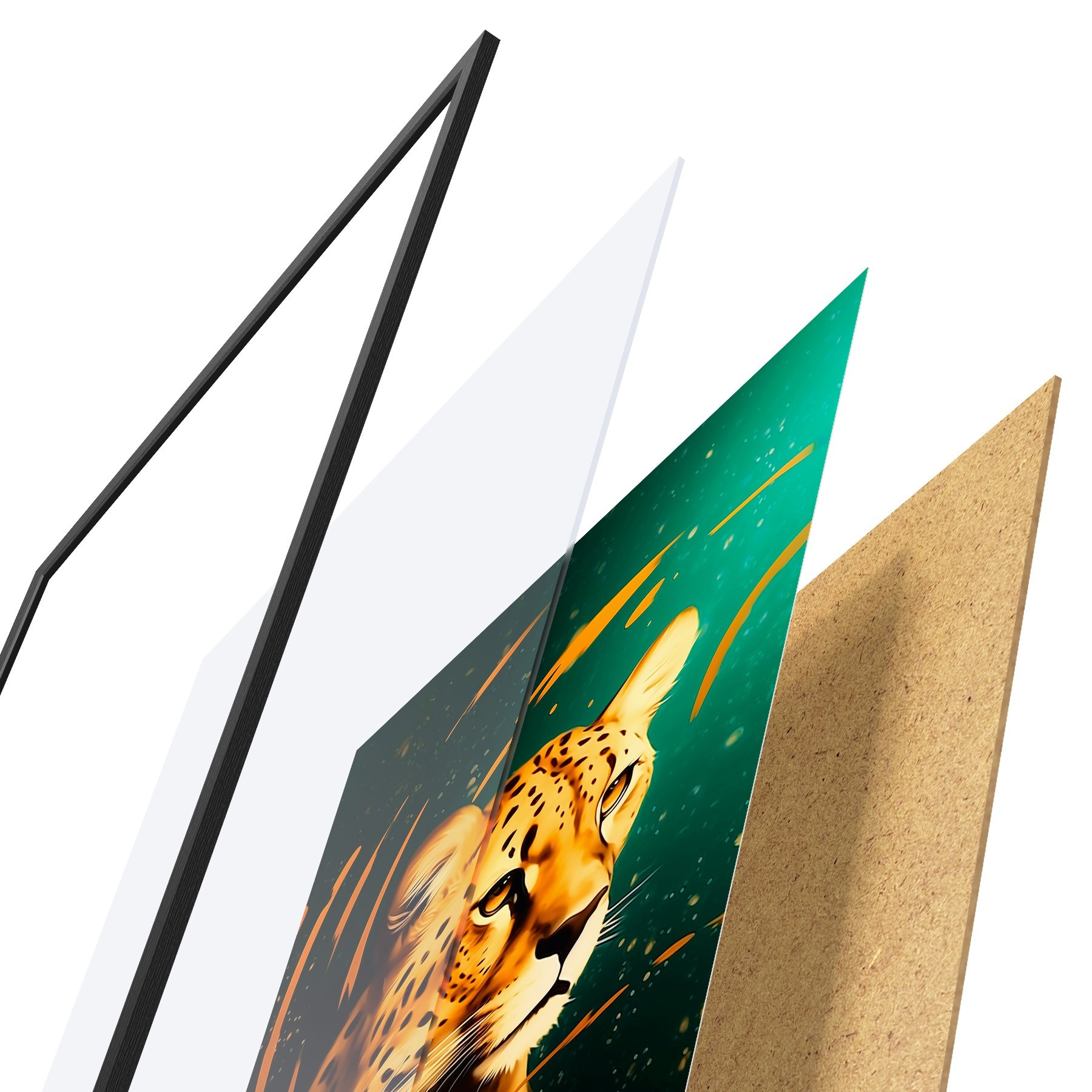 Plakatą sudaro rėmas, pleksiklas, atspausdintas vaizdas ir medžio drožlių plokštės pagrindas. Plakatą galima iš karto pakabinti ant sienos dėl kitoje pusėje esančių laikiklių.