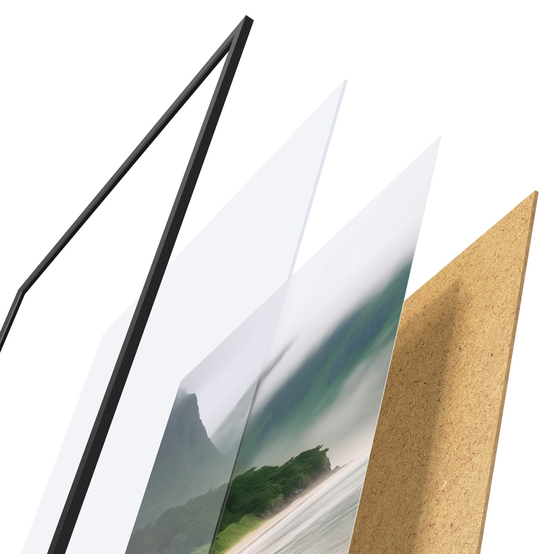 Plakatą sudaro rėmas, pleksiklas, atspausdintas vaizdas ir medžio drožlių plokštės pagrindas. Plakatą galima iš karto pakabinti ant sienos dėl kitoje pusėje esančių laikiklių.