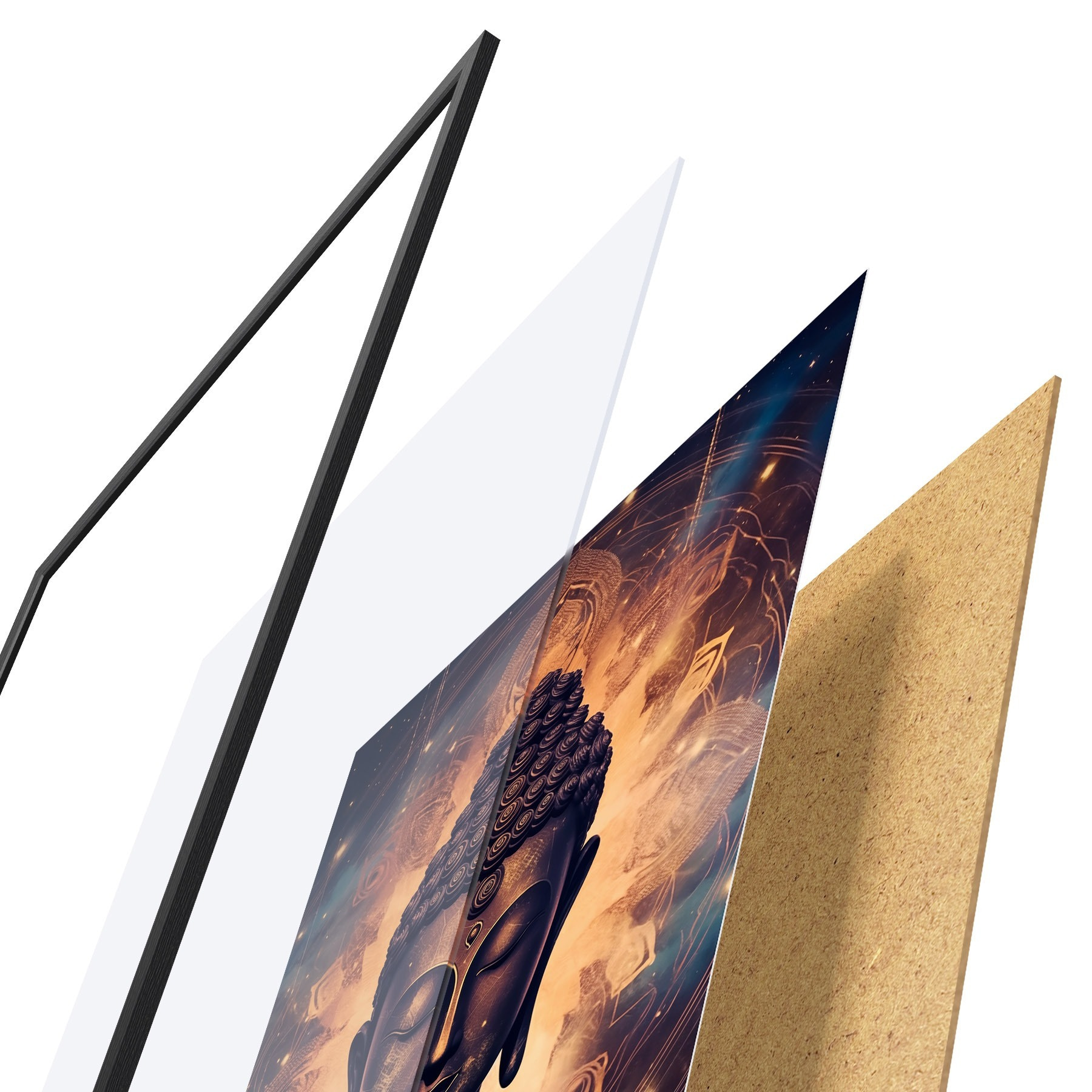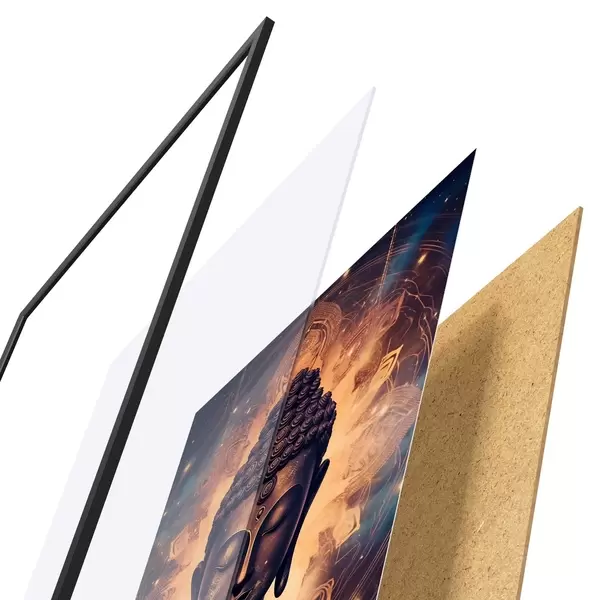 Plakatą sudaro rėmas, pleksiklas, atspausdintas vaizdas ir medžio drožlių plokštės pagrindas. Plakatą galima iš karto pakabinti ant sienos dėl kitoje pusėje esančių laikiklių.
