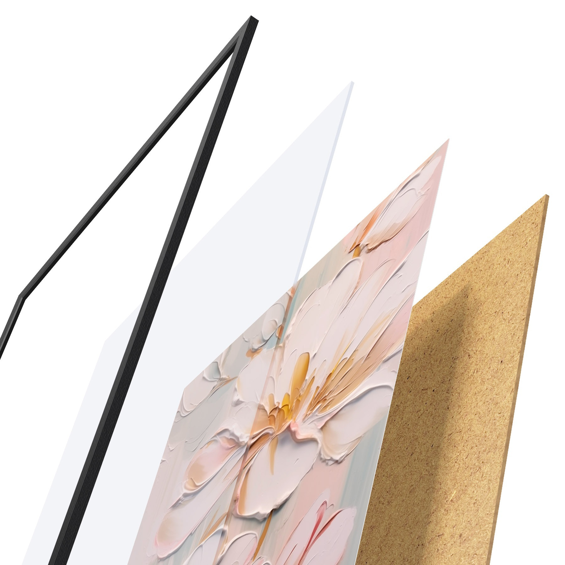 Plakatą sudaro rėmas, pleksiklas, atspausdintas vaizdas ir medžio drožlių plokštės pagrindas. Plakatą galima iš karto pakabinti ant sienos dėl kitoje pusėje esančių laikiklių.