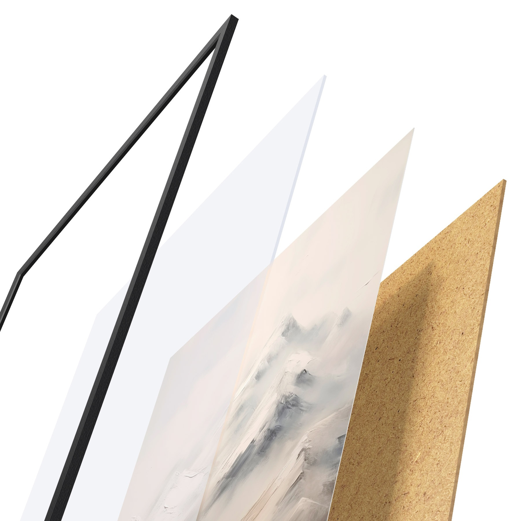 Plakatą sudaro rėmas, pleksiklas, atspausdintas vaizdas ir medžio drožlių plokštės pagrindas. Plakatą galima iš karto pakabinti ant sienos dėl kitoje pusėje esančių laikiklių.