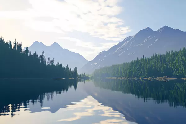 Plakatas Ežeras netoli kalnų f43288