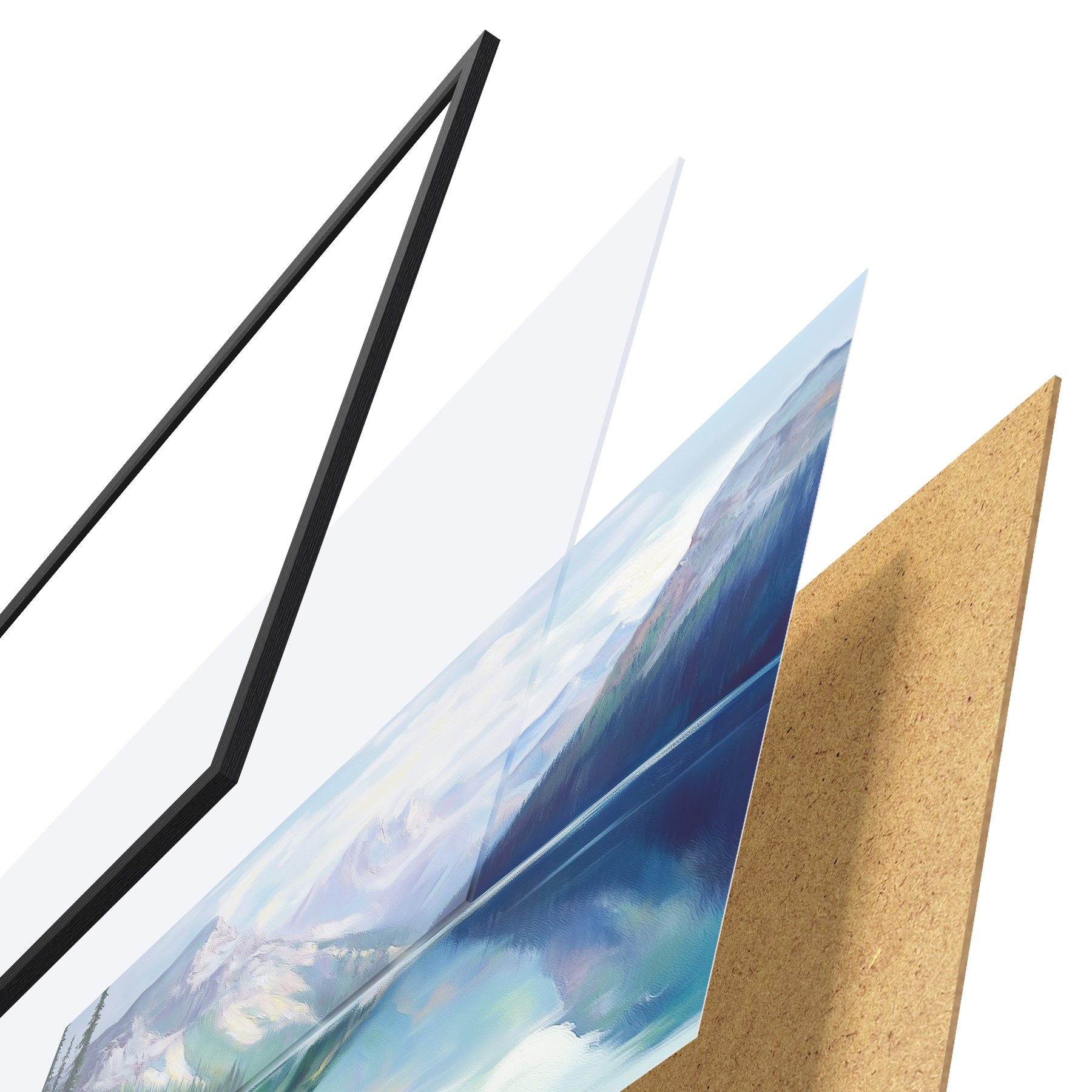 Plakatą sudaro rėmas, pleksiklas, atspausdintas vaizdas ir medžio drožlių plokštės pagrindas. Plakatą galima iš karto pakabinti ant sienos dėl kitoje pusėje esančių laikiklių.