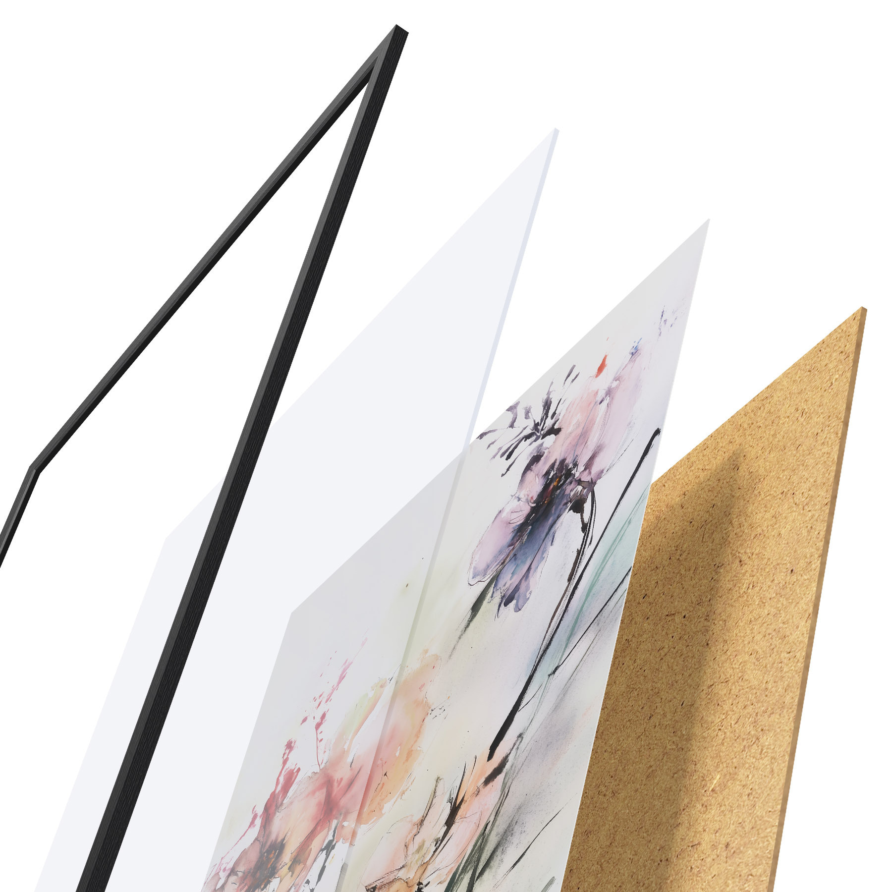 Plakatą sudaro rėmas, pleksiklas, atspausdintas vaizdas ir medžio drožlių plokštės pagrindas. Plakatą galima iš karto pakabinti ant sienos dėl kitoje pusėje esančių laikiklių.