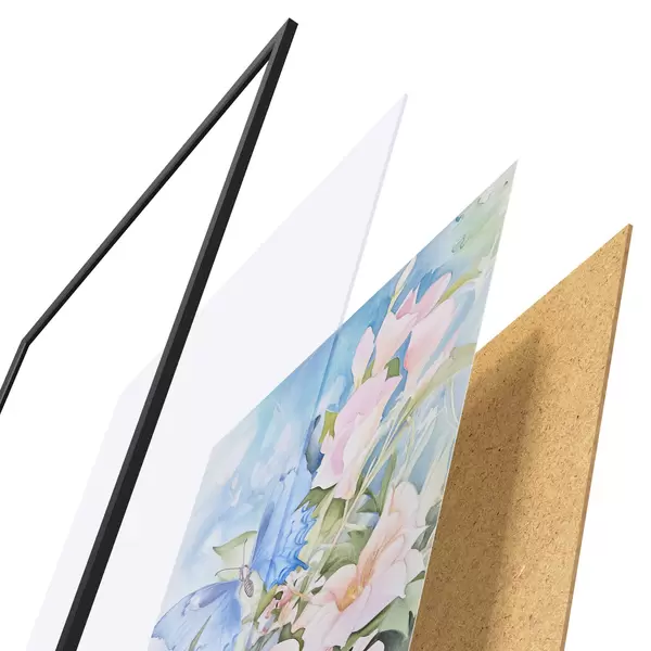 Plakatą sudaro rėmas, pleksiklas, atspausdintas vaizdas ir medžio drožlių plokštės pagrindas. Plakatą galima iš karto pakabinti ant sienos dėl kitoje pusėje esančių laikiklių.