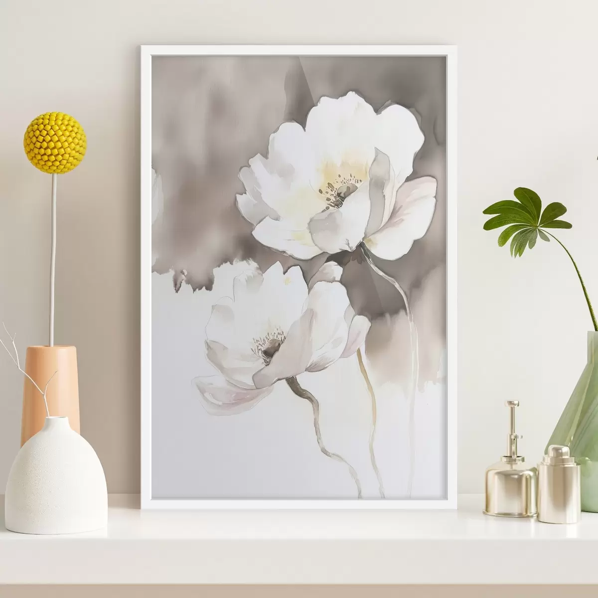 Plakatas Baltos gėlės rudame fone akvarelės dažų stiliumi Ne f43297