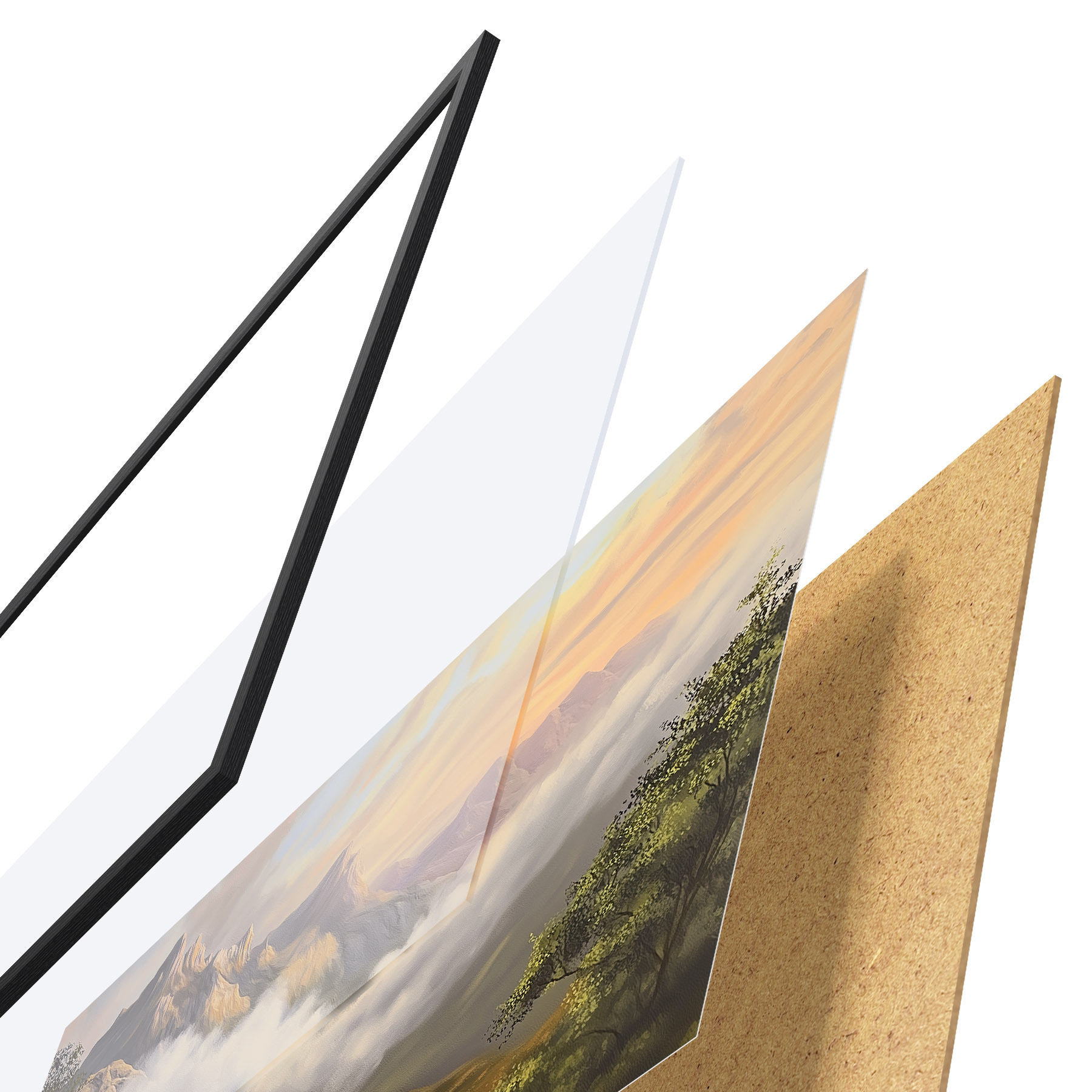 Plakatą sudaro rėmas, pleksiklas, atspausdintas vaizdas ir medžio drožlių plokštės pagrindas. Plakatą galima iš karto pakabinti ant sienos dėl kitoje pusėje esančių laikiklių.