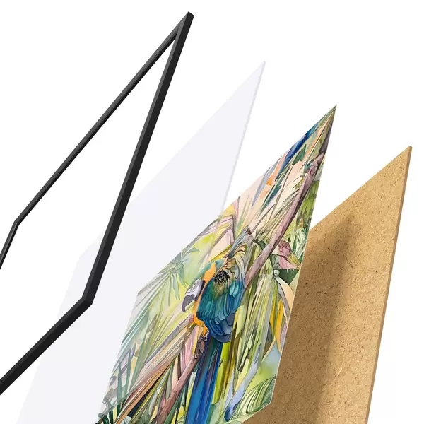 Plakatą sudaro rėmas, pleksiklas, atspausdintas vaizdas ir medžio drožlių plokštės pagrindas. Plakatą galima iš karto pakabinti ant sienos dėl kitoje pusėje esančių laikiklių.