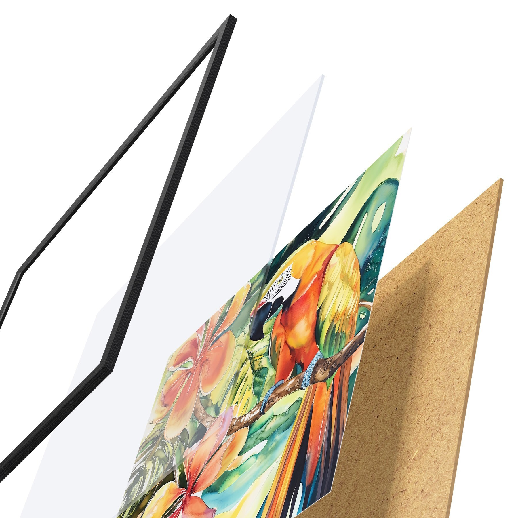Plakatą sudaro rėmas, pleksiklas, atspausdintas vaizdas ir medžio drožlių plokštės pagrindas. Plakatą galima iš karto pakabinti ant sienos dėl kitoje pusėje esančių laikiklių.