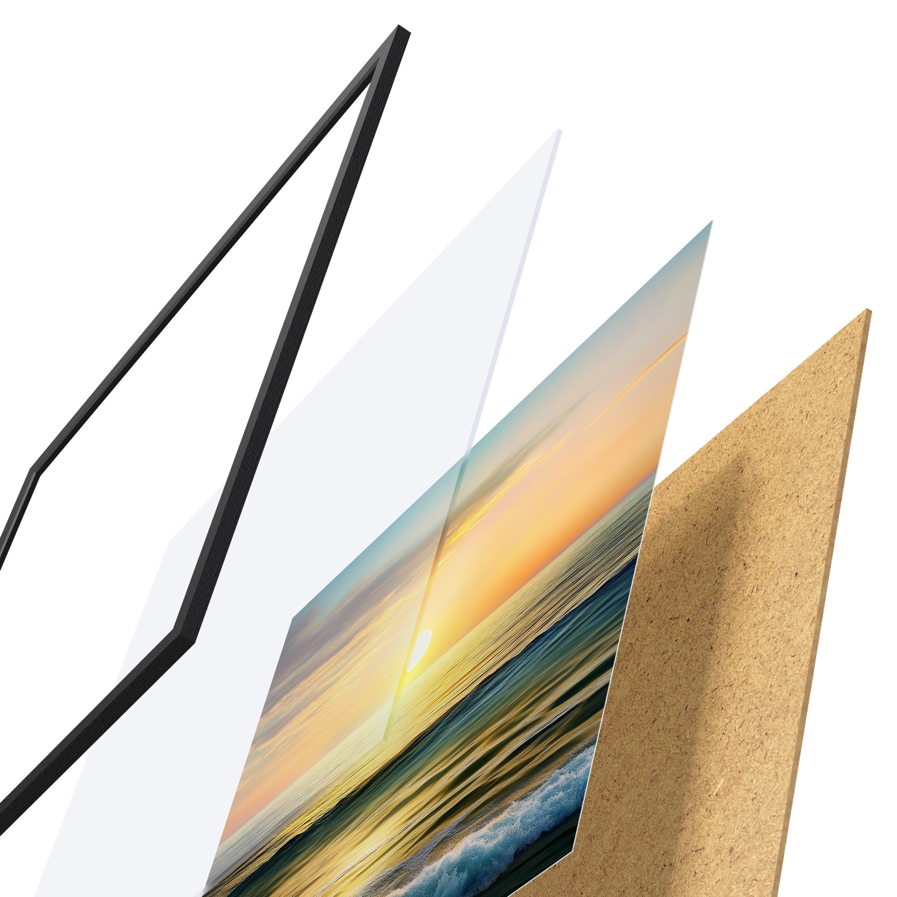 Plakatą sudaro rėmas, pleksiklas, atspausdintas vaizdas ir medžio drožlių plokštės pagrindas. Plakatą galima iš karto pakabinti ant sienos dėl kitoje pusėje esančių laikiklių.