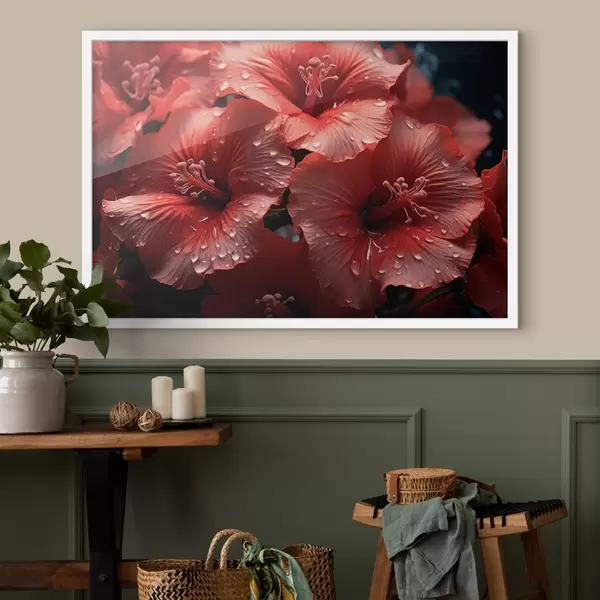 Plakatas Raudoni žiedai su rasa ant žiedlapių f43319