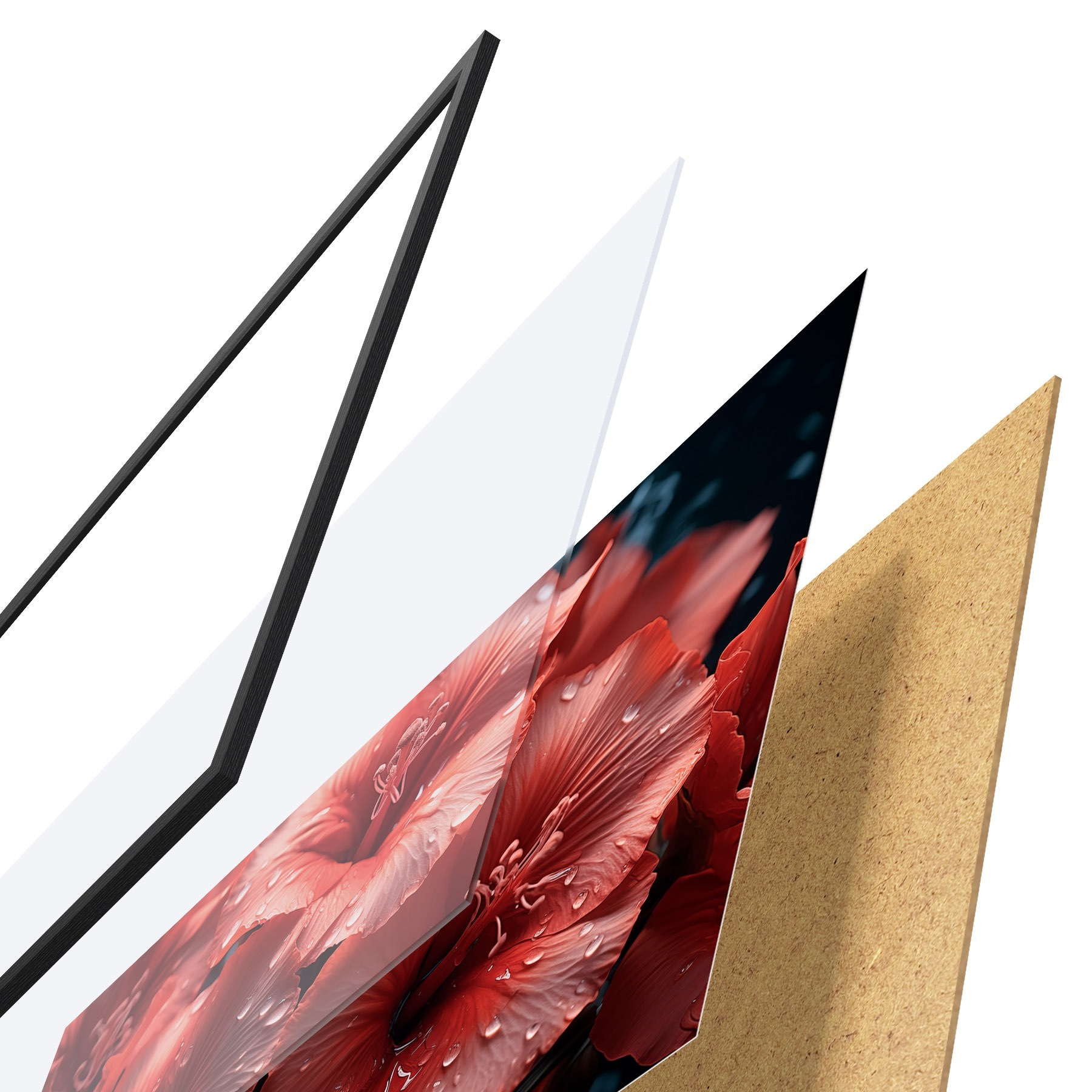 Plakatą sudaro rėmas, pleksiklas, atspausdintas vaizdas ir medžio drožlių plokštės pagrindas. Plakatą galima iš karto pakabinti ant sienos dėl kitoje pusėje esančių laikiklių.