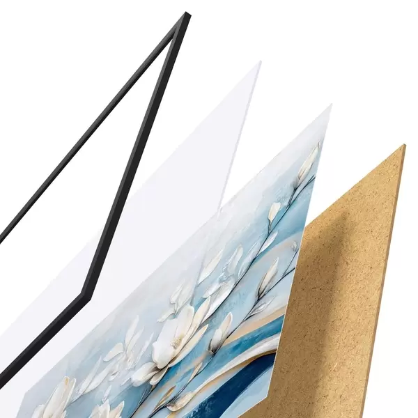 Plakatą sudaro rėmas, pleksiklas, atspausdintas vaizdas ir medžio drožlių plokštės pagrindas. Plakatą galima iš karto pakabinti ant sienos dėl kitoje pusėje esančių laikiklių.