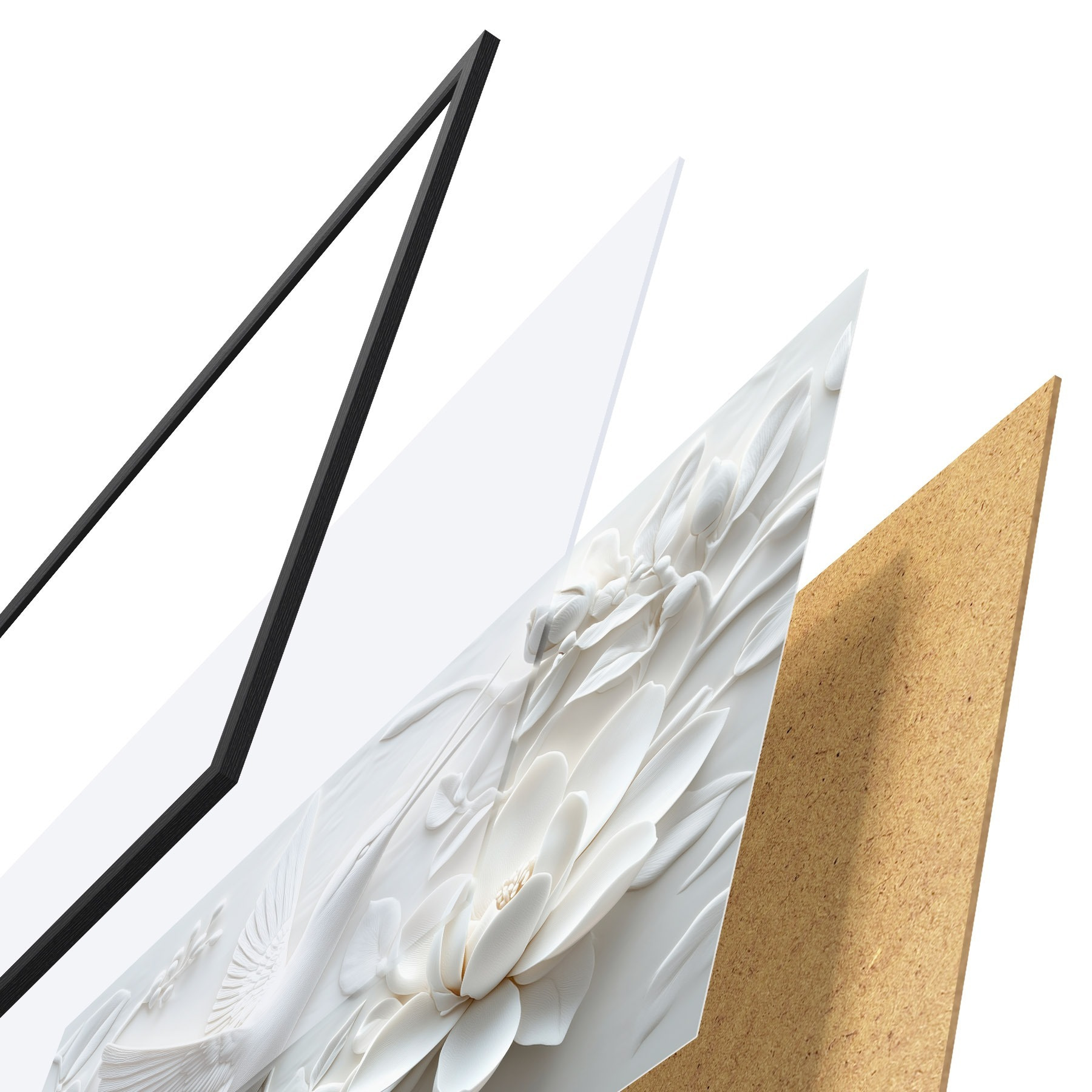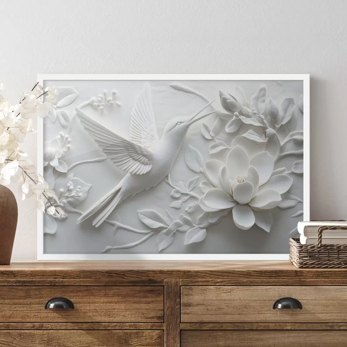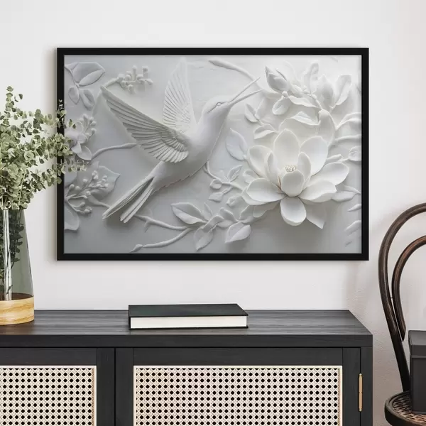 Plakatas Juodai baltas paukščio ir aplinkinių gėlių 3D vaizdas f43329