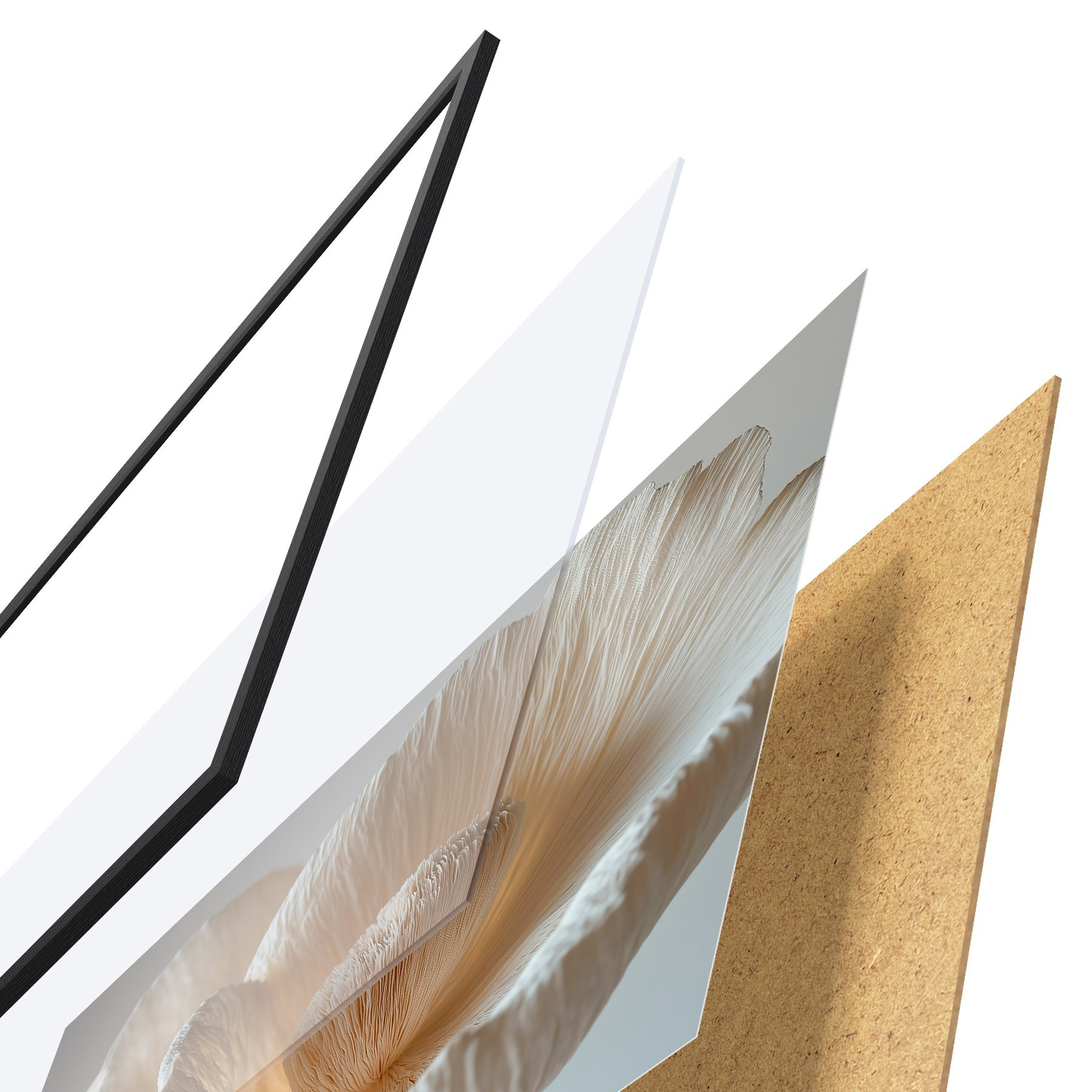 Plakatą sudaro rėmas, pleksiklas, atspausdintas vaizdas ir medžio drožlių plokštės pagrindas. Plakatą galima iš karto pakabinti ant sienos dėl kitoje pusėje esančių laikiklių.