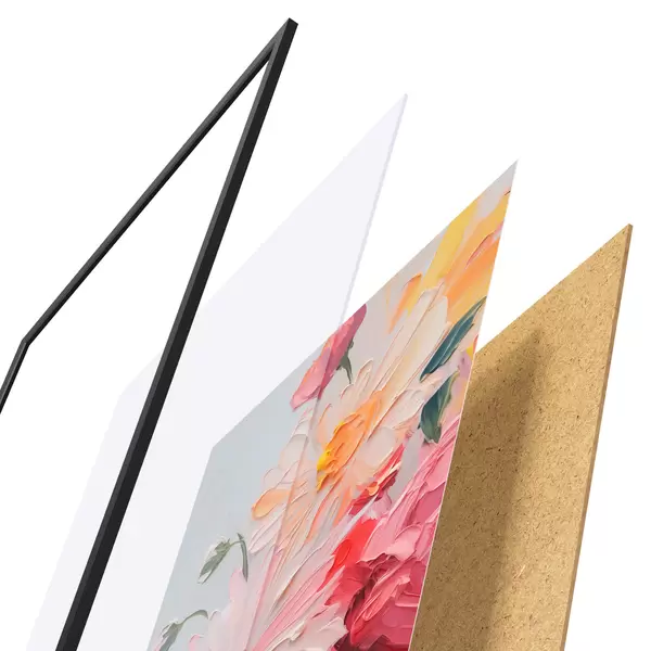 Plakatą sudaro rėmas, pleksiklas, atspausdintas vaizdas ir medžio drožlių plokštės pagrindas. Plakatą galima iš karto pakabinti ant sienos dėl kitoje pusėje esančių laikiklių.