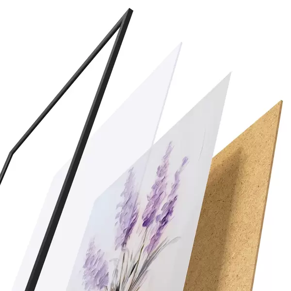 Plakatą sudaro rėmas, pleksiklas, atspausdintas vaizdas ir medžio drožlių plokštės pagrindas. Plakatą galima iš karto pakabinti ant sienos dėl kitoje pusėje esančių laikiklių.