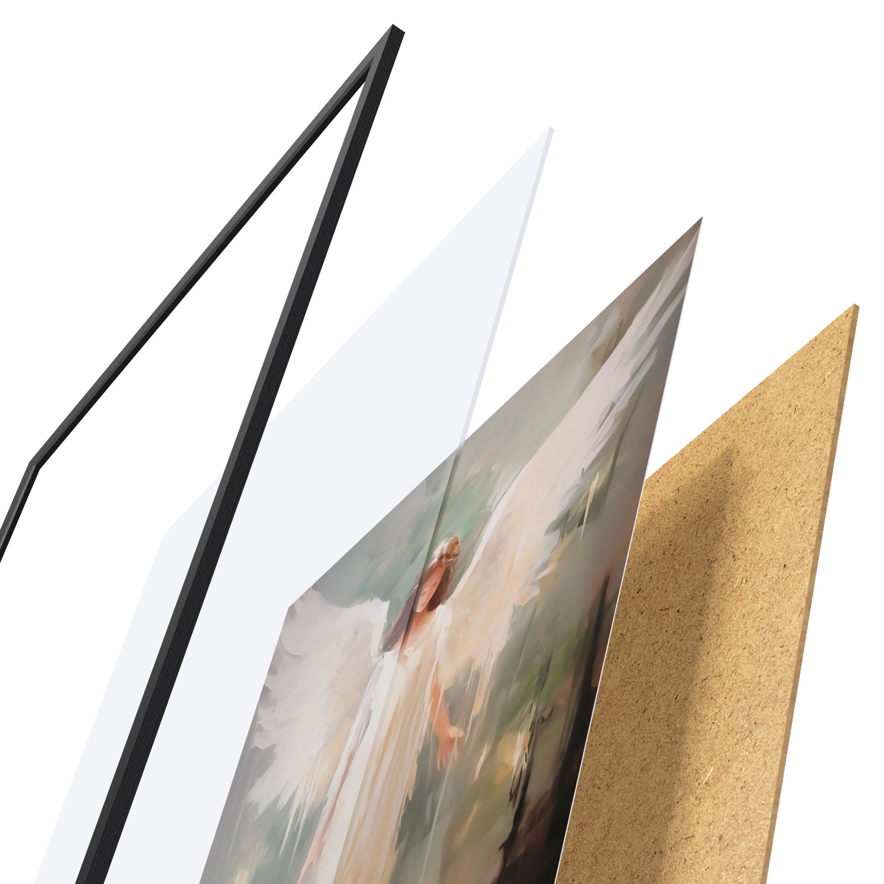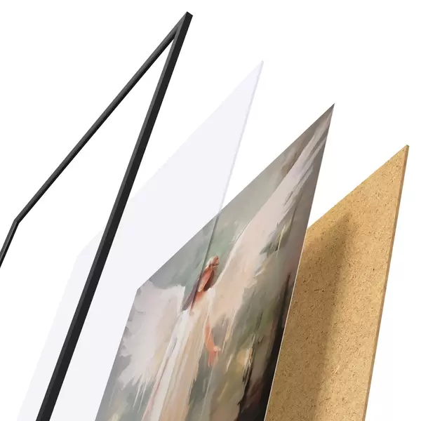Plakatą sudaro rėmas, pleksiklas, atspausdintas vaizdas ir medžio drožlių plokštės pagrindas. Plakatą galima iš karto pakabinti ant sienos dėl kitoje pusėje esančių laikiklių.