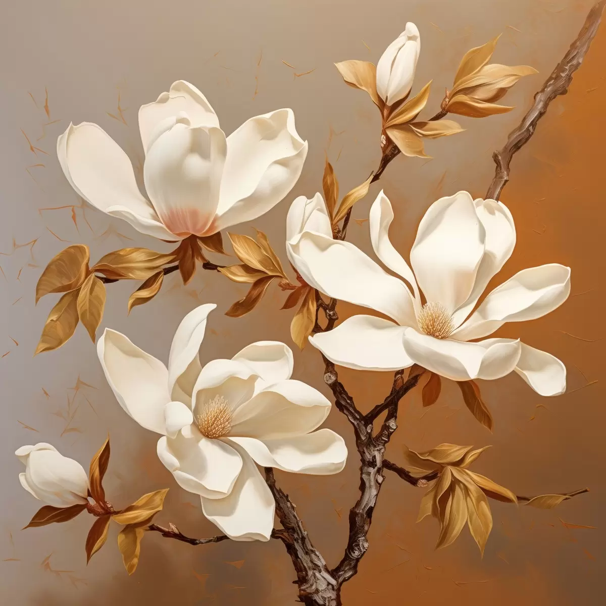 Plakatas Aliejinės tapybos stilius su balta magnolija ant šakos geltoname fone f43361