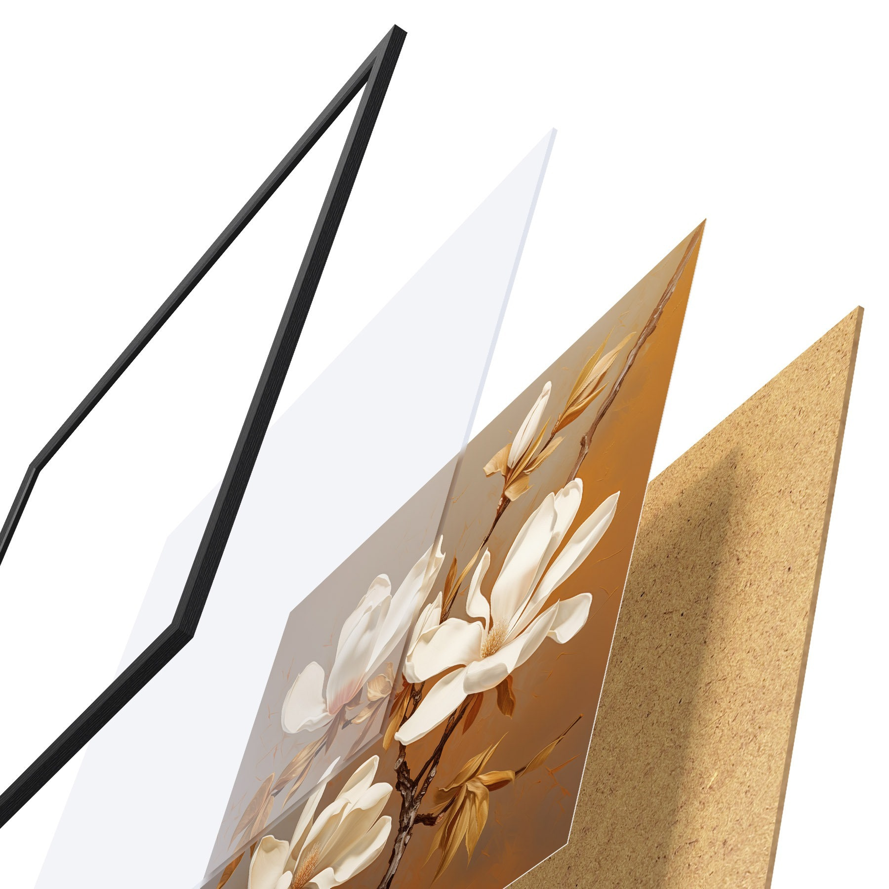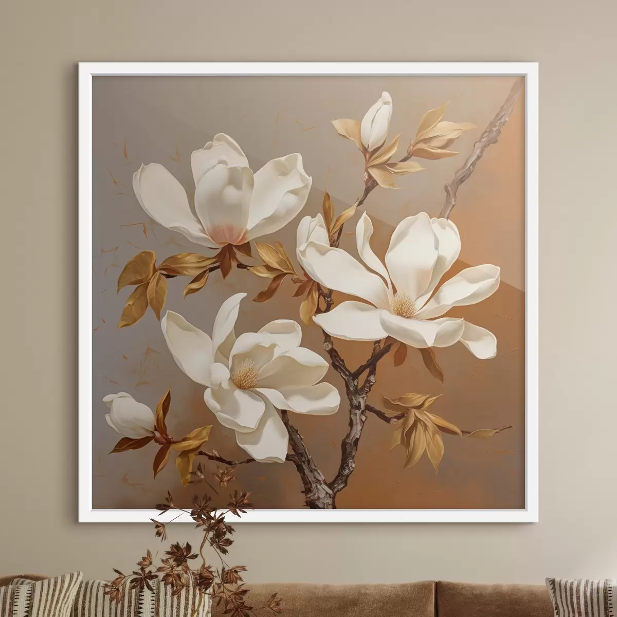 Plakatas Aliejinės tapybos stilius su balta magnolija ant šakos geltoname fone Ne f43361