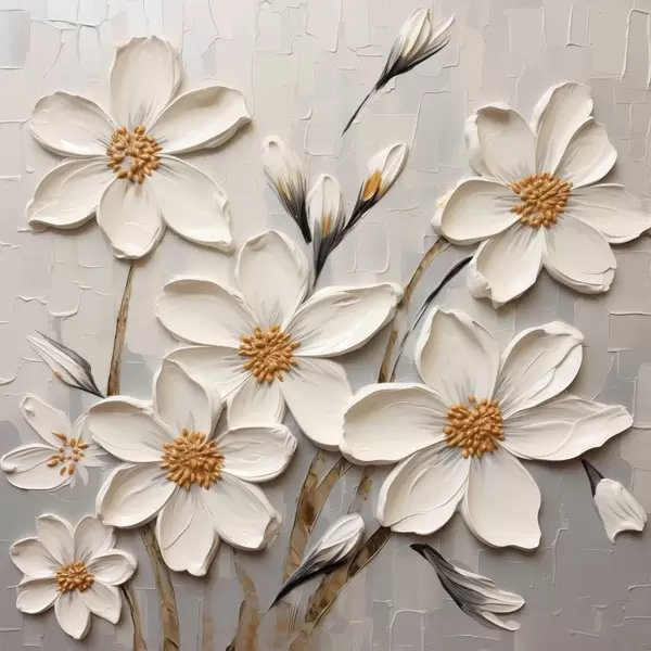 Plakatas Baltos apimties gėlės tapybos stiliumi su dideliais teptuko brūkšniais f43366