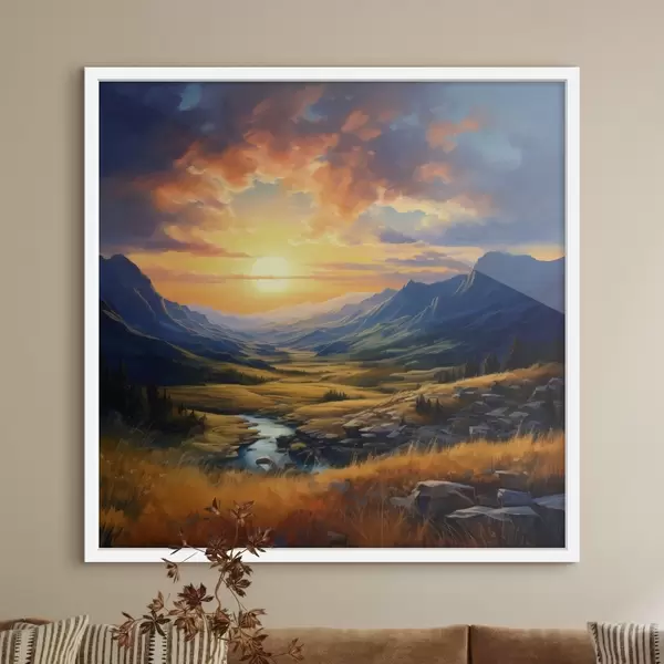 Plakatas Kalnų kraštovaizdis saulėlydžio metu f43378